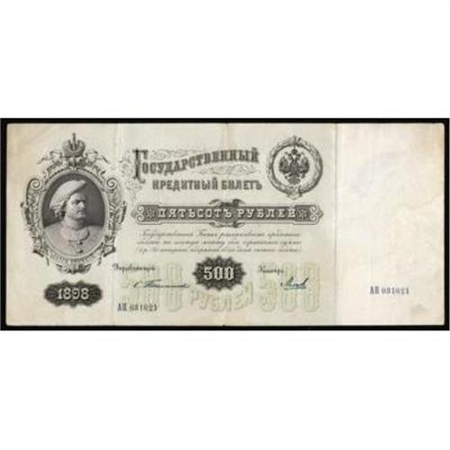 <style type="text/css"> body, td, th { font-family: Arial, Helvetica, sans-serif; font-size: 12px; color: #482424; margin: 0px; padding: 0px; } #header { background-image: url(http://www.bowersandmerena.com/ebay/images/template_v3_01.gif); clear: both; background-color: #590303; border-top-width: 2px; border-top-style: solid; border-top-color: #B38C4F; } #header #header_wrapper { height: 75px; clear: both; width: 800px; margin-right: auto; margin-left: auto; background-image: url(http://www.bowersandmerena.com/ebay/images/template_v3_03.gif); background-repeat: no-repeat; background-position: right; color: #F3EDCC; } #header #header_wrapper #header_logo { float: left; height: 75px; width: 444px; background-image: url(http://www.bowersandmerena.com/ebay/images/template_v3_02.gif); background-repeat: no-repeat; font-size: 10px; text-transform: capitalize; color: #B38C4F; } #header #header_wrapper #header_right { float: left; height: 75px; width: 356px; text-align: right; } #header #header_wrapper #header_right #headerLoginBtn { margin-bottom: 30px; } #header #header_wrapper #header_right input#txtSearch { color: #B49056; border: 1px solid #B49056; width: 175px; padding-top: 3px; padding-right: 3px; padding-bottom: 4px; padding-left: 3px; } #nav { height: 37px; background-image: url(http://www.bowersandmerena.com/ebay/images/template_v3_05.gif); clear: both; } #nav #nav_wrapper { height: 35px; width: 800px; margin-right: auto; margin-left: auto; border-left-width: 1px; border-left-style: solid; border-left-color: #B38C4F; } #nav #nav_wrapper a { padding-right: 15px; padding-left: 15px; border-right-width: 1px; border-right-style: solid; border-right-color: #B38C4F; height: 25px; padding-top: 10px; display: block; float: left; text-decoration: none; font-weight: bold; color: #5D0303; } #nav #nav_wrapper a:hover { color: #B38C4F; } #nav #nav_wrapper #search { float: right; padding-top: 7px; } #nav #nav_wrapper #search #txtSearch { font-family: Arial, Helvetica, sans-serif; font-size: 10px; text-transform: uppercase; color: #D2AE75; border: 1px solid #B38C4F; padding: 3px; } #content_bgd { background-image: url(http://www.bowersandmerena.com/ebay/images/template_v3_09.gif); background-repeat: repeat-y; background-position: center; padding-top: 15px; padding-bottom: 15px; background-color: #FBFBDB; } #content_wrapper { clear: both; height: auto; width: 800px; margin-right: auto; margin-left: auto; } .LotDetailWhite { line-height:normal; font-size:13px; font-family: arial,helvetica,sans-serif; color: White; font-weight: bold; } .LotDetailInformation { line-height:normal; font-size: 13px; font-family: arial,helvetica,sans-serif; } .LotDetailMessage { line-height:normal; font-size: 13px; font-family: arial,helvetica,sans-serif; color: red; } } tr.HeaderAuctionTitle td { color: #000000; font-weight: bold; padding: 2px; background-image: url(http://www.bowersandmerena.com/ebay/images/template_v3_05.gif); background-repeat: repeat-x; border-bottom-width: 1px; border-bottom-style: solid; border-bottom-color: #B38C4F; } table.AuctionSummary a, table.AuctionSummary a:link, table.AuctionSummary a:visited { color: #0000FF; text-decoration: none; } } td.tableHeaderLeft { border-left-width: 1px; border-left-style: solid; border-left-color: #B38C4F; } td.tableHeaderRight { border-right-width: 1px; border-right-style: solid; border-right-color: #B38C4F; } td.tableCellMiddle { border-left-width: 1px; border-left-style: solid; border-left-color: #B38C4F; border-right-width: 1px; border-right-style: solid; border-right-color: #B38C4F; padding: 5px; } tr.footer td { border-top-width: 1px; border-top-style: solid; border-top-color: #B38C4F; } </style> </head> <body> <div id="header"> <div id="header_wrapper"> <div id="header_logo"> </div> <div id="header_right"> </div> </div> </div> <div id="nav"> <div id="nav_wrapper"> <a href="http://www.bowersandmerena.com">Our eBayLive Auctions</a> <a href="#PaymentInfo">Payment Information</a> <a href="#ShippingInfo">Shipping Information</a> <a href="#About">About Bowers and Merena</a> </div> </div> <div id="content_bgd"> <div id="content_wrapper"> <table width="100%" border="0" cellpadding="5" cellspacing="0" class="AuctionSummary"> <tbody> <tr class="HeaderAuctionTitle" style="height: 25px;"> <td align="left" class="tableHeaderLeft" > </td> <td align="center" class="tableHeaderRight"> <span style="font-size: large;">Lot #2564. Imperial Russia. State Credit Notes, 1898 Issue.</span> </td> </tr> <tr> <td colspan="3" class="tableCellMiddle"> 1898, 500 Rubles, P-6c., XF condition. Konshin signature. Scarce note.