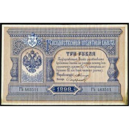 <style type="text/css"> body, td, th { font-family: Arial, Helvetica, sans-serif; font-size: 12px; color: #482424; margin: 0px; padding: 0px; } #header { background-image: url(http://www.bowersandmerena.com/ebay/images/template_v3_01.gif); clear: both; background-color: #590303; border-top-width: 2px; border-top-style: solid; border-top-color: #B38C4F; } #header #header_wrapper { height: 75px; clear: both; width: 800px; margin-right: auto; margin-left: auto; background-image: url(http://www.bowersandmerena.com/ebay/images/template_v3_03.gif); background-repeat: no-repeat; background-position: right; color: #F3EDCC; } #header #header_wrapper #header_logo { float: left; height: 75px; width: 444px; background-image: url(http://www.bowersandmerena.com/ebay/images/template_v3_02.gif); background-repeat: no-repeat; font-size: 10px; text-transform: capitalize; color: #B38C4F; } #header #header_wrapper #header_right { float: left; height: 75px; width: 356px; text-align: right; } #header #header_wrapper #header_right #headerLoginBtn { margin-bottom: 30px; } #header #header_wrapper #header_right input#txtSearch { color: #B49056; border: 1px solid #B49056; width: 175px; padding-top: 3px; padding-right: 3px; padding-bottom: 4px; padding-left: 3px; } #nav { height: 37px; background-image: url(http://www.bowersandmerena.com/ebay/images/template_v3_05.gif); clear: both; } #nav #nav_wrapper { height: 35px; width: 800px; margin-right: auto; margin-left: auto; border-left-width: 1px; border-left-style: solid; border-left-color: #B38C4F; } #nav #nav_wrapper a { padding-right: 15px; padding-left: 15px; border-right-width: 1px; border-right-style: solid; border-right-color: #B38C4F; height: 25px; padding-top: 10px; display: block; float: left; text-decoration: none; font-weight: bold; color: #5D0303; } #nav #nav_wrapper a:hover { color: #B38C4F; } #nav #nav_wrapper #search { float: right; padding-top: 7px; } #nav #nav_wrapper #search #txtSearch { font-family: Arial, Helvetica, sans-serif; font-size: 10px; text-transform: uppercase; color: #D2AE75; border: 1px solid #B38C4F; padding: 3px; } #content_bgd { background-image: url(http://www.bowersandmerena.com/ebay/images/template_v3_09.gif); background-repeat: repeat-y; background-position: center; padding-top: 15px; padding-bottom: 15px; background-color: #FBFBDB; } #content_wrapper { clear: both; height: auto; width: 800px; margin-right: auto; margin-left: auto; } .LotDetailWhite { line-height:normal; font-size:13px; font-family: arial,helvetica,sans-serif; color: White; font-weight: bold; } .LotDetailInformation { line-height:normal; font-size: 13px; font-family: arial,helvetica,sans-serif; } .LotDetailMessage { line-height:normal; font-size: 13px; font-family: arial,helvetica,sans-serif; color: red; } } tr.HeaderAuctionTitle td { color: #000000; font-weight: bold; padding: 2px; background-image: url(http://www.bowersandmerena.com/ebay/images/template_v3_05.gif); background-repeat: repeat-x; border-bottom-width: 1px; border-bottom-style: solid; border-bottom-color: #B38C4F; } table.AuctionSummary a, table.AuctionSummary a:link, table.AuctionSummary a:visited { color: #0000FF; text-decoration: none; } } td.tableHeaderLeft { border-left-width: 1px; border-left-style: solid; border-left-color: #B38C4F; } td.tableHeaderRight { border-right-width: 1px; border-right-style: solid; border-right-color: #B38C4F; } td.tableCellMiddle { border-left-width: 1px; border-left-style: solid; border-left-color: #B38C4F; border-right-width: 1px; border-right-style: solid; border-right-color: #B38C4F; padding: 5px; } tr.footer td { border-top-width: 1px; border-top-style: solid; border-top-color: #B38C4F; } </style> </head> <body> <div id="header"> <div id="header_wrapper"> <div id="header_logo"> </div> <div id="header_right"> </div> </div> </div> <div id="nav"> <div id="nav_wrapper"> <a href="http://www.bowersandmerena.com">Our eBayLive Auctions</a> <a href="#PaymentInfo">Payment Information</a> <a href="#ShippingInfo">Shipping Information</a> <a href="#About">About Bowers and Merena</a> </div> </div> <div id="content_bgd"> <div id="content_wrapper"> <table width="100%" border="0" cellpadding="5" cellspacing="0" class="AuctionSummary"> <tbody> <tr class="HeaderAuctionTitle" style="height: 25px;"> <td align="left" class="tableHeaderLeft" > </td> <td align="center" class="tableHeaderRight"> <span style="font-size: large;">Lot #2534. Imperial Russia. State Credit Notes, 1899 Issue.</span> </td> </tr> <tr> <td colspan="3" class="tableCellMiddle"> 1898, 3 Rubles, P-2b, VF to VF+ condition with claims to almost being XF. Timashev signature.