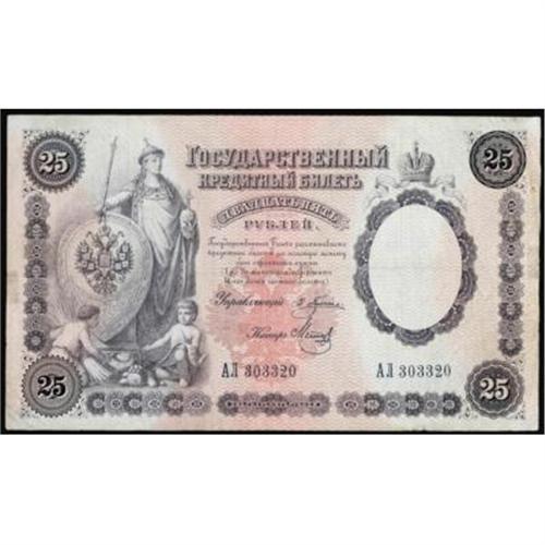 <style type="text/css"> body, td, th { font-family: Arial, Helvetica, sans-serif; font-size: 12px; color: #482424; margin: 0px; padding: 0px; } #header { background-image: url(http://www.bowersandmerena.com/ebay/images/template_v3_01.gif); clear: both; background-color: #590303; border-top-width: 2px; border-top-style: solid; border-top-color: #B38C4F; } #header #header_wrapper { height: 75px; clear: both; width: 800px; margin-right: auto; margin-left: auto; background-image: url(http://www.bowersandmerena.com/ebay/images/template_v3_03.gif); background-repeat: no-repeat; background-position: right; color: #F3EDCC; } #header #header_wrapper #header_logo { float: left; height: 75px; width: 444px; background-image: url(http://www.bowersandmerena.com/ebay/images/template_v3_02.gif); background-repeat: no-repeat; font-size: 10px; text-transform: capitalize; color: #B38C4F; } #header #header_wrapper #header_right { float: left; height: 75px; width: 356px; text-align: right; } #header #header_wrapper #header_right #headerLoginBtn { margin-bottom: 30px; } #header #header_wrapper #header_right input#txtSearch { color: #B49056; border: 1px solid #B49056; width: 175px; padding-top: 3px; padding-right: 3px; padding-bottom: 4px; padding-left: 3px; } #nav { height: 37px; background-image: url(http://www.bowersandmerena.com/ebay/images/template_v3_05.gif); clear: both; } #nav #nav_wrapper { height: 35px; width: 800px; margin-right: auto; margin-left: auto; border-left-width: 1px; border-left-style: solid; border-left-color: #B38C4F; } #nav #nav_wrapper a { padding-right: 15px; padding-left: 15px; border-right-width: 1px; border-right-style: solid; border-right-color: #B38C4F; height: 25px; padding-top: 10px; display: block; float: left; text-decoration: none; font-weight: bold; color: #5D0303; } #nav #nav_wrapper a:hover { color: #B38C4F; } #nav #nav_wrapper #search { float: right; padding-top: 7px; } #nav #nav_wrapper #search #txtSearch { font-family: Arial, Helvetica, sans-serif; font-size: 10px; text-transform: uppercase; color: #D2AE75; border: 1px solid #B38C4F; padding: 3px; } #content_bgd { background-image: url(http://www.bowersandmerena.com/ebay/images/template_v3_09.gif); background-repeat: repeat-y; background-position: center; padding-top: 15px; padding-bottom: 15px; background-color: #FBFBDB; } #content_wrapper { clear: both; height: auto; width: 800px; margin-right: auto; margin-left: auto; } .LotDetailWhite { line-height:normal; font-size:13px; font-family: arial,helvetica,sans-serif; color: White; font-weight: bold; } .LotDetailInformation { line-height:normal; font-size: 13px; font-family: arial,helvetica,sans-serif; } .LotDetailMessage { line-height:normal; font-size: 13px; font-family: arial,helvetica,sans-serif; color: red; } } tr.HeaderAuctionTitle td { color: #000000; font-weight: bold; padding: 2px; background-image: url(http://www.bowersandmerena.com/ebay/images/template_v3_05.gif); background-repeat: repeat-x; border-bottom-width: 1px; border-bottom-style: solid; border-bottom-color: #B38C4F; } table.AuctionSummary a, table.AuctionSummary a:link, table.AuctionSummary a:visited { color: #0000FF; text-decoration: none; } } td.tableHeaderLeft { border-left-width: 1px; border-left-style: solid; border-left-color: #B38C4F; } td.tableHeaderRight { border-right-width: 1px; border-right-style: solid; border-right-color: #B38C4F; } td.tableCellMiddle { border-left-width: 1px; border-left-style: solid; border-left-color: #B38C4F; border-right-width: 1px; border-right-style: solid; border-right-color: #B38C4F; padding: 5px; } tr.footer td { border-top-width: 1px; border-top-style: solid; border-top-color: #B38C4F; } </style> </head> <body> <div id="header"> <div id="header_wrapper"> <div id="header_logo"> </div> <div id="header_right"> </div> </div> </div> <div id="nav"> <div id="nav_wrapper"> <a href="http://www.bowersandmerena.com">Our eBayLive Auctions</a> <a href="#PaymentInfo">Payment Information</a> <a href="#ShippingInfo">Shipping Information</a> <a href="#About">About Bowers and Merena</a> </div> </div> <div id="content_bgd"> <div id="content_wrapper"> <table width="100%" border="0" cellpadding="5" cellspacing="0" class="AuctionSummary"> <tbody> <tr class="HeaderAuctionTitle" style="height: 25px;"> <td align="left" class="tableHeaderLeft" > </td> <td align="center" class="tableHeaderRight"> <span style="font-size: large;">Lot #2566. Imperial Russia. State Credit Notes, 1899 Issue.</span> </td> </tr> <tr> <td colspan="3" class="tableCellMiddle"> 1899, 25 Rubles, P-7a, VF+ to XF condition. Pleske signature. Scarce note in high grade.