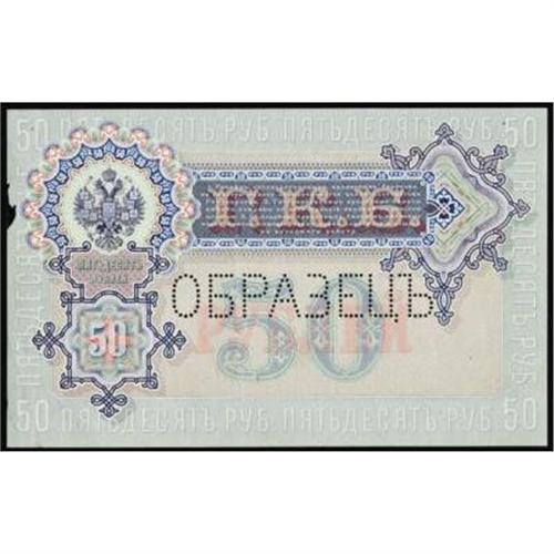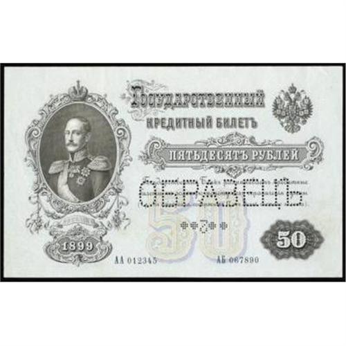 <style type="text/css"> body, td, th { font-family: Arial, Helvetica, sans-serif; font-size: 12px; color: #482424; margin: 0px; padding: 0px; } #header { background-image: url(http://www.bowersandmerena.com/ebay/images/template_v3_01.gif); clear: both; background-color: #590303; border-top-width: 2px; border-top-style: solid; border-top-color: #B38C4F; } #header #header_wrapper { height: 75px; clear: both; width: 800px; margin-right: auto; margin-left: auto; background-image: url(http://www.bowersandmerena.com/ebay/images/template_v3_03.gif); background-repeat: no-repeat; background-position: right; color: #F3EDCC; } #header #header_wrapper #header_logo { float: left; height: 75px; width: 444px; background-image: url(http://www.bowersandmerena.com/ebay/images/template_v3_02.gif); background-repeat: no-repeat; font-size: 10px; text-transform: capitalize; color: #B38C4F; } #header #header_wrapper #header_right { float: left; height: 75px; width: 356px; text-align: right; } #header #header_wrapper #header_right #headerLoginBtn { margin-bottom: 30px; } #header #header_wrapper #header_right input#txtSearch { color: #B49056; border: 1px solid #B49056; width: 175px; padding-top: 3px; padding-right: 3px; padding-bottom: 4px; padding-left: 3px; } #nav { height: 37px; background-image: url(http://www.bowersandmerena.com/ebay/images/template_v3_05.gif); clear: both; } #nav #nav_wrapper { height: 35px; width: 800px; margin-right: auto; margin-left: auto; border-left-width: 1px; border-left-style: solid; border-left-color: #B38C4F; } #nav #nav_wrapper a { padding-right: 15px; padding-left: 15px; border-right-width: 1px; border-right-style: solid; border-right-color: #B38C4F; height: 25px; padding-top: 10px; display: block; float: left; text-decoration: none; font-weight: bold; color: #5D0303; } #nav #nav_wrapper a:hover { color: #B38C4F; } #nav #nav_wrapper #search { float: right; padding-top: 7px; } #nav #nav_wrapper #search #txtSearch { font-family: Arial, Helvetica, sans-serif; font-size: 10px; text-transform: uppercase; color: #D2AE75; border: 1px solid #B38C4F; padding: 3px; } #content_bgd { background-image: url(http://www.bowersandmerena.com/ebay/images/template_v3_09.gif); background-repeat: repeat-y; background-position: center; padding-top: 15px; padding-bottom: 15px; background-color: #FBFBDB; } #content_wrapper { clear: both; height: auto; width: 800px; margin-right: auto; margin-left: auto; } .LotDetailWhite { line-height:normal; font-size:13px; font-family: arial,helvetica,sans-serif; color: White; font-weight: bold; } .LotDetailInformation { line-height:normal; font-size: 13px; font-family: arial,helvetica,sans-serif; } .LotDetailMessage { line-height:normal; font-size: 13px; font-family: arial,helvetica,sans-serif; color: red; } } tr.HeaderAuctionTitle td { color: #000000; font-weight: bold; padding: 2px; background-image: url(http://www.bowersandmerena.com/ebay/images/template_v3_05.gif); background-repeat: repeat-x; border-bottom-width: 1px; border-bottom-style: solid; border-bottom-color: #B38C4F; } table.AuctionSummary a, table.AuctionSummary a:link, table.AuctionSummary a:visited { color: #0000FF; text-decoration: none; } } td.tableHeaderLeft { border-left-width: 1px; border-left-style: solid; border-left-color: #B38C4F; } td.tableHeaderRight { border-right-width: 1px; border-right-style: solid; border-right-color: #B38C4F; } td.tableCellMiddle { border-left-width: 1px; border-left-style: solid; border-left-color: #B38C4F; border-right-width: 1px; border-right-style: solid; border-right-color: #B38C4F; padding: 5px; } tr.footer td { border-top-width: 1px; border-top-style: solid; border-top-color: #B38C4F; } </style> </head> <body> <div id="header"> <div id="header_wrapper"> <div id="header_logo"> </div> <div id="header_right"> </div> </div> </div> <div id="nav"> <div id="nav_wrapper"> <a href="http://www.bowersandmerena.com">Our eBayLive Auctions</a> <a href="#PaymentInfo">Payment Information</a> <a href="#ShippingInfo">Shipping Information</a> <a href="#About">About Bowers and Merena</a> </div> </div> <div id="content_bgd"> <div id="content_wrapper"> <table width="100%" border="0" cellpadding="5" cellspacing="0" class="AuctionSummary"> <tbody> <tr class="HeaderAuctionTitle" style="height: 25px;"> <td align="left" class="tableHeaderLeft" > </td> <td align="center" class="tableHeaderRight"> <span style="font-size: large;">Lot #2567. Imperial Russia. State Credit Notes, 1899 Issue.</span> </td> </tr> <tr> <td colspan="3" class="tableCellMiddle"> Uniface face and back Specimen banknotes, no signatures, 1899, 50 Rubles, P-8s, uniface face and back, Pin punch Cyrillic specimen overprint and serial numbers "AA.012345". AU to AU+ condition, ink stain on back left margin, attractive and rare note.