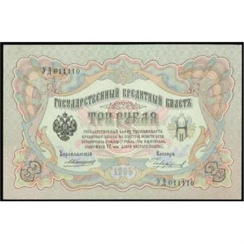 <style type="text/css"> body, td, th { font-family: Arial, Helvetica, sans-serif; font-size: 12px; color: #482424; margin: 0px; padding: 0px; } #header { background-image: url(http://www.bowersandmerena.com/ebay/images/template_v3_01.gif); clear: both; background-color: #590303; border-top-width: 2px; border-top-style: solid; border-top-color: #B38C4F; } #header #header_wrapper { height: 75px; clear: both; width: 800px; margin-right: auto; margin-left: auto; background-image: url(http://www.bowersandmerena.com/ebay/images/template_v3_03.gif); background-repeat: no-repeat; background-position: right; color: #F3EDCC; } #header #header_wrapper #header_logo { float: left; height: 75px; width: 444px; background-image: url(http://www.bowersandmerena.com/ebay/images/template_v3_02.gif); background-repeat: no-repeat; font-size: 10px; text-transform: capitalize; color: #B38C4F; } #header #header_wrapper #header_right { float: left; height: 75px; width: 356px; text-align: right; } #header #header_wrapper #header_right #headerLoginBtn { margin-bottom: 30px; } #header #header_wrapper #header_right input#txtSearch { color: #B49056; border: 1px solid #B49056; width: 175px; padding-top: 3px; padding-right: 3px; padding-bottom: 4px; padding-left: 3px; } #nav { height: 37px; background-image: url(http://www.bowersandmerena.com/ebay/images/template_v3_05.gif); clear: both; } #nav #nav_wrapper { height: 35px; width: 800px; margin-right: auto; margin-left: auto; border-left-width: 1px; border-left-style: solid; border-left-color: #B38C4F; } #nav #nav_wrapper a { padding-right: 15px; padding-left: 15px; border-right-width: 1px; border-right-style: solid; border-right-color: #B38C4F; height: 25px; padding-top: 10px; display: block; float: left; text-decoration: none; font-weight: bold; color: #5D0303; } #nav #nav_wrapper a:hover { color: #B38C4F; } #nav #nav_wrapper #search { float: right; padding-top: 7px; } #nav #nav_wrapper #search #txtSearch { font-family: Arial, Helvetica, sans-serif; font-size: 10px; text-transform: uppercase; color: #D2AE75; border: 1px solid #B38C4F; padding: 3px; } #content_bgd { background-image: url(http://www.bowersandmerena.com/ebay/images/template_v3_09.gif); background-repeat: repeat-y; background-position: center; padding-top: 15px; padding-bottom: 15px; background-color: #FBFBDB; } #content_wrapper { clear: both; height: auto; width: 800px; margin-right: auto; margin-left: auto; } .LotDetailWhite { line-height:normal; font-size:13px; font-family: arial,helvetica,sans-serif; color: White; font-weight: bold; } .LotDetailInformation { line-height:normal; font-size: 13px; font-family: arial,helvetica,sans-serif; } .LotDetailMessage { line-height:normal; font-size: 13px; font-family: arial,helvetica,sans-serif; color: red; } } tr.HeaderAuctionTitle td { color: #000000; font-weight: bold; padding: 2px; background-image: url(http://www.bowersandmerena.com/ebay/images/template_v3_05.gif); background-repeat: repeat-x; border-bottom-width: 1px; border-bottom-style: solid; border-bottom-color: #B38C4F; } table.AuctionSummary a, table.AuctionSummary a:link, table.AuctionSummary a:visited { color: #0000FF; text-decoration: none; } } td.tableHeaderLeft { border-left-width: 1px; border-left-style: solid; border-left-color: #B38C4F; } td.tableHeaderRight { border-right-width: 1px; border-right-style: solid; border-right-color: #B38C4F; } td.tableCellMiddle { border-left-width: 1px; border-left-style: solid; border-left-color: #B38C4F; border-right-width: 1px; border-right-style: solid; border-right-color: #B38C4F; padding: 5px; } tr.footer td { border-top-width: 1px; border-top-style: solid; border-top-color: #B38C4F; } </style> </head> <body> <div id="header"> <div id="header_wrapper"> <div id="header_logo"> </div> <div id="header_right"> </div> </div> </div> <div id="nav"> <div id="nav_wrapper"> <a href="http://www.bowersandmerena.com">Our eBayLive Auctions</a> <a href="#PaymentInfo">Payment Information</a> <a href="#ShippingInfo">Shipping Information</a> <a href="#About">About Bowers and Merena</a> </div> </div> <div id="content_bgd"> <div id="content_wrapper"> <table width="100%" border="0" cellpadding="5" cellspacing="0" class="AuctionSummary"> <tbody> <tr class="HeaderAuctionTitle" style="height: 25px;"> <td align="left" class="tableHeaderLeft" > </td> <td align="center" class="tableHeaderRight"> <span style="font-size: large;">Lot #2571. Imperial Russia. State Credit Notes, 1905-12 Issue, RADAR Note.</span> </td> </tr> <tr> <td colspan="3" class="tableCellMiddle"> Radar Serial Number "011110", 1905, 3 Rubles, P-9b, AU condition. Konshin signature.
