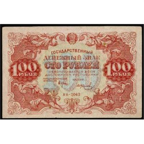 <style type="text/css"> body, td, th { font-family: Arial, Helvetica, sans-serif; font-size: 12px; color: #482424; margin: 0px; padding: 0px; } #header { background-image: url(http://www.bowersandmerena.com/ebay/images/template_v3_01.gif); clear: both; background-color: #590303; border-top-width: 2px; border-top-style: solid; border-top-color: #B38C4F; } #header #header_wrapper { height: 75px; clear: both; width: 800px; margin-right: auto; margin-left: auto; background-image: url(http://www.bowersandmerena.com/ebay/images/template_v3_03.gif); background-repeat: no-repeat; background-position: right; color: #F3EDCC; } #header #header_wrapper #header_logo { float: left; height: 75px; width: 444px; background-image: url(http://www.bowersandmerena.com/ebay/images/template_v3_02.gif); background-repeat: no-repeat; font-size: 10px; text-transform: capitalize; color: #B38C4F; } #header #header_wrapper #header_right { float: left; height: 75px; width: 356px; text-align: right; } #header #header_wrapper #header_right #headerLoginBtn { margin-bottom: 30px; } #header #header_wrapper #header_right input#txtSearch { color: #B49056; border: 1px solid #B49056; width: 175px; padding-top: 3px; padding-right: 3px; padding-bottom: 4px; padding-left: 3px; } #nav { height: 37px; background-image: url(http://www.bowersandmerena.com/ebay/images/template_v3_05.gif); clear: both; } #nav #nav_wrapper { height: 35px; width: 800px; margin-right: auto; margin-left: auto; border-left-width: 1px; border-left-style: solid; border-left-color: #B38C4F; } #nav #nav_wrapper a { padding-right: 15px; padding-left: 15px; border-right-width: 1px; border-right-style: solid; border-right-color: #B38C4F; height: 25px; padding-top: 10px; display: block; float: left; text-decoration: none; font-weight: bold; color: #5D0303; } #nav #nav_wrapper a:hover { color: #B38C4F; } #nav #nav_wrapper #search { float: right; padding-top: 7px; } #nav #nav_wrapper #search #txtSearch { font-family: Arial, Helvetica, sans-serif; font-size: 10px; text-transform: uppercase; color: #D2AE75; border: 1px solid #B38C4F; padding: 3px; } #content_bgd { background-image: url(http://www.bowersandmerena.com/ebay/images/template_v3_09.gif); background-repeat: repeat-y; background-position: center; padding-top: 15px; padding-bottom: 15px; background-color: #FBFBDB; } #content_wrapper { clear: both; height: auto; width: 800px; margin-right: auto; margin-left: auto; } .LotDetailWhite { line-height:normal; font-size:13px; font-family: arial,helvetica,sans-serif; color: White; font-weight: bold; } .LotDetailInformation { line-height:normal; font-size: 13px; font-family: arial,helvetica,sans-serif; } .LotDetailMessage { line-height:normal; font-size: 13px; font-family: arial,helvetica,sans-serif; color: red; } } tr.HeaderAuctionTitle td { color: #000000; font-weight: bold; padding: 2px; background-image: url(http://www.bowersandmerena.com/ebay/images/template_v3_05.gif); background-repeat: repeat-x; border-bottom-width: 1px; border-bottom-style: solid; border-bottom-color: #B38C4F; } table.AuctionSummary a, table.AuctionSummary a:link, table.AuctionSummary a:visited { color: #0000FF; text-decoration: none; } } td.tableHeaderLeft { border-left-width: 1px; border-left-style: solid; border-left-color: #B38C4F; } td.tableHeaderRight { border-right-width: 1px; border-right-style: solid; border-right-color: #B38C4F; } td.tableCellMiddle { border-left-width: 1px; border-left-style: solid; border-left-color: #B38C4F; border-right-width: 1px; border-right-style: solid; border-right-color: #B38C4F; padding: 5px; } tr.footer td { border-top-width: 1px; border-top-style: solid; border-top-color: #B38C4F; } </style> </head> <body> <div id="header"> <div id="header_wrapper"> <div id="header_logo"> </div> <div id="header_right"> </div> </div> </div> <div id="nav"> <div id="nav_wrapper"> <a href="http://www.bowersandmerena.com">Our eBayLive Auctions</a> <a href="#PaymentInfo">Payment Information</a> <a href="#ShippingInfo">Shipping Information</a> <a href="#About">About Bowers and Merena</a> </div> </div> <div id="content_bgd"> <div id="content_wrapper"> <table width="100%" border="0" cellpadding="5" cellspacing="0" class="AuctionSummary"> <tbody> <tr class="HeaderAuctionTitle" style="height: 25px;"> <td align="left" class="tableHeaderLeft" > </td> <td align="center" class="tableHeaderRight"> <span style="font-size: large;">Lot #2638. Russian Federation. State Currency Notes, 1922 Issue.</span> </td> </tr> <tr> <td colspan="3" class="tableCellMiddle"> Lot of 8 different notes. Includes 7 different signature varieties of 100 Rubles, P-133 in various conditions, from fine to AU and a single 500 Ruble, P-135, in VF+ to XF condition. Scarce signature assortment that would be difficult to assemble currently.