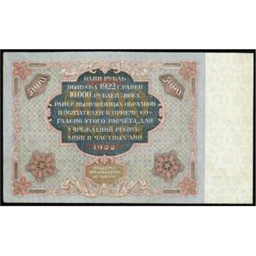 <style type="text/css"> body, td, th { font-family: Arial, Helvetica, sans-serif; font-size: 12px; color: #482424; margin: 0px; padding: 0px; } #header { background-image: url(http://www.bowersandmerena.com/ebay/images/template_v3_01.gif); clear: both; background-color: #590303; border-top-width: 2px; border-top-style: solid; border-top-color: #B38C4F; } #header #header_wrapper { height: 75px; clear: both; width: 800px; margin-right: auto; margin-left: auto; background-image: url(http://www.bowersandmerena.com/ebay/images/template_v3_03.gif); background-repeat: no-repeat; background-position: right; color: #F3EDCC; } #header #header_wrapper #header_logo { float: left; height: 75px; width: 444px; background-image: url(http://www.bowersandmerena.com/ebay/images/template_v3_02.gif); background-repeat: no-repeat; font-size: 10px; text-transform: capitalize; color: #B38C4F; } #header #header_wrapper #header_right { float: left; height: 75px; width: 356px; text-align: right; } #header #header_wrapper #header_right #headerLoginBtn { margin-bottom: 30px; } #header #header_wrapper #header_right input#txtSearch { color: #B49056; border: 1px solid #B49056; width: 175px; padding-top: 3px; padding-right: 3px; padding-bottom: 4px; padding-left: 3px; } #nav { height: 37px; background-image: url(http://www.bowersandmerena.com/ebay/images/template_v3_05.gif); clear: both; } #nav #nav_wrapper { height: 35px; width: 800px; margin-right: auto; margin-left: auto; border-left-width: 1px; border-left-style: solid; border-left-color: #B38C4F; } #nav #nav_wrapper a { padding-right: 15px; padding-left: 15px; border-right-width: 1px; border-right-style: solid; border-right-color: #B38C4F; height: 25px; padding-top: 10px; display: block; float: left; text-decoration: none; font-weight: bold; color: #5D0303; } #nav #nav_wrapper a:hover { color: #B38C4F; } #nav #nav_wrapper #search { float: right; padding-top: 7px; } #nav #nav_wrapper #search #txtSearch { font-family: Arial, Helvetica, sans-serif; font-size: 10px; text-transform: uppercase; color: #D2AE75; border: 1px solid #B38C4F; padding: 3px; } #content_bgd { background-image: url(http://www.bowersandmerena.com/ebay/images/template_v3_09.gif); background-repeat: repeat-y; background-position: center; padding-top: 15px; padding-bottom: 15px; background-color: #FBFBDB; } #content_wrapper { clear: both; height: auto; width: 800px; margin-right: auto; margin-left: auto; } .LotDetailWhite { line-height:normal; font-size:13px; font-family: arial,helvetica,sans-serif; color: White; font-weight: bold; } .LotDetailInformation { line-height:normal; font-size: 13px; font-family: arial,helvetica,sans-serif; } .LotDetailMessage { line-height:normal; font-size: 13px; font-family: arial,helvetica,sans-serif; color: red; } } tr.HeaderAuctionTitle td { color: #000000; font-weight: bold; padding: 2px; background-image: url(http://www.bowersandmerena.com/ebay/images/template_v3_05.gif); background-repeat: repeat-x; border-bottom-width: 1px; border-bottom-style: solid; border-bottom-color: #B38C4F; } table.AuctionSummary a, table.AuctionSummary a:link, table.AuctionSummary a:visited { color: #0000FF; text-decoration: none; } } td.tableHeaderLeft { border-left-width: 1px; border-left-style: solid; border-left-color: #B38C4F; } td.tableHeaderRight { border-right-width: 1px; border-right-style: solid; border-right-color: #B38C4F; } td.tableCellMiddle { border-left-width: 1px; border-left-style: solid; border-left-color: #B38C4F; border-right-width: 1px; border-right-style: solid; border-right-color: #B38C4F; padding: 5px; } tr.footer td { border-top-width: 1px; border-top-style: solid; border-top-color: #B38C4F; } </style> </head> <body> <div id="header"> <div id="header_wrapper"> <div id="header_logo"> </div> <div id="header_right"> </div> </div> </div> <div id="nav"> <div id="nav_wrapper"> <a href="http://www.bowersandmerena.com">Our eBayLive Auctions</a> <a href="#PaymentInfo">Payment Information</a> <a href="#ShippingInfo">Shipping Information</a> <a href="#About">About Bowers and Merena</a> </div> </div> <div id="content_bgd"> <div id="content_wrapper"> <table width="100%" border="0" cellpadding="5" cellspacing="0" class="AuctionSummary"> <tbody> <tr class="HeaderAuctionTitle" style="height: 25px;"> <td align="left" class="tableHeaderLeft" > </td> <td align="center" class="tableHeaderRight"> <span style="font-size: large;">Lot #2639. Russian Federation. State Currency Notes, 1922 Issue.</span> </td> </tr> <tr> <td colspan="3" class="tableCellMiddle"> 1922, 5,000 Rubles, P-137, AU to CU condition.