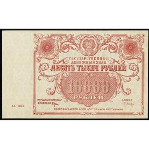 <style type="text/css"> body, td, th { font-family: Arial, Helvetica, sans-serif; font-size: 12px; color: #482424; margin: 0px; padding: 0px; } #header { background-image: url(http://www.bowersandmerena.com/ebay/images/template_v3_01.gif); clear: both; background-color: #590303; border-top-width: 2px; border-top-style: solid; border-top-color: #B38C4F; } #header #header_wrapper { height: 75px; clear: both; width: 800px; margin-right: auto; margin-left: auto; background-image: url(http://www.bowersandmerena.com/ebay/images/template_v3_03.gif); background-repeat: no-repeat; background-position: right; color: #F3EDCC; } #header #header_wrapper #header_logo { float: left; height: 75px; width: 444px; background-image: url(http://www.bowersandmerena.com/ebay/images/template_v3_02.gif); background-repeat: no-repeat; font-size: 10px; text-transform: capitalize; color: #B38C4F; } #header #header_wrapper #header_right { float: left; height: 75px; width: 356px; text-align: right; } #header #header_wrapper #header_right #headerLoginBtn { margin-bottom: 30px; } #header #header_wrapper #header_right input#txtSearch { color: #B49056; border: 1px solid #B49056; width: 175px; padding-top: 3px; padding-right: 3px; padding-bottom: 4px; padding-left: 3px; } #nav { height: 37px; background-image: url(http://www.bowersandmerena.com/ebay/images/template_v3_05.gif); clear: both; } #nav #nav_wrapper { height: 35px; width: 800px; margin-right: auto; margin-left: auto; border-left-width: 1px; border-left-style: solid; border-left-color: #B38C4F; } #nav #nav_wrapper a { padding-right: 15px; padding-left: 15px; border-right-width: 1px; border-right-style: solid; border-right-color: #B38C4F; height: 25px; padding-top: 10px; display: block; float: left; text-decoration: none; font-weight: bold; color: #5D0303; } #nav #nav_wrapper a:hover { color: #B38C4F; } #nav #nav_wrapper #search { float: right; padding-top: 7px; } #nav #nav_wrapper #search #txtSearch { font-family: Arial, Helvetica, sans-serif; font-size: 10px; text-transform: uppercase; color: #D2AE75; border: 1px solid #B38C4F; padding: 3px; } #content_bgd { background-image: url(http://www.bowersandmerena.com/ebay/images/template_v3_09.gif); background-repeat: repeat-y; background-position: center; padding-top: 15px; padding-bottom: 15px; background-color: #FBFBDB; } #content_wrapper { clear: both; height: auto; width: 800px; margin-right: auto; margin-left: auto; } .LotDetailWhite { line-height:normal; font-size:13px; font-family: arial,helvetica,sans-serif; color: White; font-weight: bold; } .LotDetailInformation { line-height:normal; font-size: 13px; font-family: arial,helvetica,sans-serif; } .LotDetailMessage { line-height:normal; font-size: 13px; font-family: arial,helvetica,sans-serif; color: red; } } tr.HeaderAuctionTitle td { color: #000000; font-weight: bold; padding: 2px; background-image: url(http://www.bowersandmerena.com/ebay/images/template_v3_05.gif); background-repeat: repeat-x; border-bottom-width: 1px; border-bottom-style: solid; border-bottom-color: #B38C4F; } table.AuctionSummary a, table.AuctionSummary a:link, table.AuctionSummary a:visited { color: #0000FF; text-decoration: none; } } td.tableHeaderLeft { border-left-width: 1px; border-left-style: solid; border-left-color: #B38C4F; } td.tableHeaderRight { border-right-width: 1px; border-right-style: solid; border-right-color: #B38C4F; } td.tableCellMiddle { border-left-width: 1px; border-left-style: solid; border-left-color: #B38C4F; border-right-width: 1px; border-right-style: solid; border-right-color: #B38C4F; padding: 5px; } tr.footer td { border-top-width: 1px; border-top-style: solid; border-top-color: #B38C4F; } </style> </head> <body> <div id="header"> <div id="header_wrapper"> <div id="header_logo"> </div> <div id="header_right"> </div> </div> </div> <div id="nav"> <div id="nav_wrapper"> <a href="http://www.bowersandmerena.com">Our eBayLive Auctions</a> <a href="#PaymentInfo">Payment Information</a> <a href="#ShippingInfo">Shipping Information</a> <a href="#About">About Bowers and Merena</a> </div> </div> <div id="content_bgd"> <div id="content_wrapper"> <table width="100%" border="0" cellpadding="5" cellspacing="0" class="AuctionSummary"> <tbody> <tr class="HeaderAuctionTitle" style="height: 25px;"> <td align="left" class="tableHeaderLeft" > </td> <td align="center" class="tableHeaderRight"> <span style="font-size: large;">Lot #2640. Russian Federation. State Currency Notes, 1922 Issue.</span> </td> </tr> <tr> <td colspan="3" class="tableCellMiddle"> 1922, 10,000 Rubles, P-138, Unc. to CU condition. Scarce note in high grade.