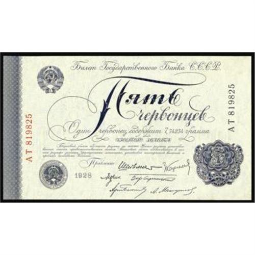 <style type="text/css"> body, td, th { font-family: Arial, Helvetica, sans-serif; font-size: 12px; color: #482424; margin: 0px; padding: 0px; } #header { background-image: url(http://www.bowersandmerena.com/ebay/images/template_v3_01.gif); clear: both; background-color: #590303; border-top-width: 2px; border-top-style: solid; border-top-color: #B38C4F; } #header #header_wrapper { height: 75px; clear: both; width: 800px; margin-right: auto; margin-left: auto; background-image: url(http://www.bowersandmerena.com/ebay/images/template_v3_03.gif); background-repeat: no-repeat; background-position: right; color: #F3EDCC; } #header #header_wrapper #header_logo { float: left; height: 75px; width: 444px; background-image: url(http://www.bowersandmerena.com/ebay/images/template_v3_02.gif); background-repeat: no-repeat; font-size: 10px; text-transform: capitalize; color: #B38C4F; } #header #header_wrapper #header_right { float: left; height: 75px; width: 356px; text-align: right; } #header #header_wrapper #header_right #headerLoginBtn { margin-bottom: 30px; } #header #header_wrapper #header_right input#txtSearch { color: #B49056; border: 1px solid #B49056; width: 175px; padding-top: 3px; padding-right: 3px; padding-bottom: 4px; padding-left: 3px; } #nav { height: 37px; background-image: url(http://www.bowersandmerena.com/ebay/images/template_v3_05.gif); clear: both; } #nav #nav_wrapper { height: 35px; width: 800px; margin-right: auto; margin-left: auto; border-left-width: 1px; border-left-style: solid; border-left-color: #B38C4F; } #nav #nav_wrapper a { padding-right: 15px; padding-left: 15px; border-right-width: 1px; border-right-style: solid; border-right-color: #B38C4F; height: 25px; padding-top: 10px; display: block; float: left; text-decoration: none; font-weight: bold; color: #5D0303; } #nav #nav_wrapper a:hover { color: #B38C4F; } #nav #nav_wrapper #search { float: right; padding-top: 7px; } #nav #nav_wrapper #search #txtSearch { font-family: Arial, Helvetica, sans-serif; font-size: 10px; text-transform: uppercase; color: #D2AE75; border: 1px solid #B38C4F; padding: 3px; } #content_bgd { background-image: url(http://www.bowersandmerena.com/ebay/images/template_v3_09.gif); background-repeat: repeat-y; background-position: center; padding-top: 15px; padding-bottom: 15px; background-color: #FBFBDB; } #content_wrapper { clear: both; height: auto; width: 800px; margin-right: auto; margin-left: auto; } .LotDetailWhite { line-height:normal; font-size:13px; font-family: arial,helvetica,sans-serif; color: White; font-weight: bold; } .LotDetailInformation { line-height:normal; font-size: 13px; font-family: arial,helvetica,sans-serif; } .LotDetailMessage { line-height:normal; font-size: 13px; font-family: arial,helvetica,sans-serif; color: red; } } tr.HeaderAuctionTitle td { color: #000000; font-weight: bold; padding: 2px; background-image: url(http://www.bowersandmerena.com/ebay/images/template_v3_05.gif); background-repeat: repeat-x; border-bottom-width: 1px; border-bottom-style: solid; border-bottom-color: #B38C4F; } table.AuctionSummary a, table.AuctionSummary a:link, table.AuctionSummary a:visited { color: #0000FF; text-decoration: none; } } td.tableHeaderLeft { border-left-width: 1px; border-left-style: solid; border-left-color: #B38C4F; } td.tableHeaderRight { border-right-width: 1px; border-right-style: solid; border-right-color: #B38C4F; } td.tableCellMiddle { border-left-width: 1px; border-left-style: solid; border-left-color: #B38C4F; border-right-width: 1px; border-right-style: solid; border-right-color: #B38C4F; padding: 5px; } tr.footer td { border-top-width: 1px; border-top-style: solid; border-top-color: #B38C4F; } </style> </head> <body> <div id="header"> <div id="header_wrapper"> <div id="header_logo"> </div> <div id="header_right"> </div> </div> </div> <div id="nav"> <div id="nav_wrapper"> <a href="http://www.bowersandmerena.com">Our eBayLive Auctions</a> <a href="#PaymentInfo">Payment Information</a> <a href="#ShippingInfo">Shipping Information</a> <a href="#About">About Bowers and Merena</a> </div> </div> <div id="content_bgd"> <div id="content_wrapper"> <table width="100%" border="0" cellpadding="5" cellspacing="0" class="AuctionSummary"> <tbody> <tr class="HeaderAuctionTitle" style="height: 25px;"> <td align="left" class="tableHeaderLeft" > </td> <td align="center" class="tableHeaderRight"> <span style="font-size: large;">Lot #2659. U.S.S.R. State Currency Notes, 1926; 1928 Issue.</span> </td> </tr> <tr> <td colspan="3" class="tableCellMiddle"> 1928, 5 Chervontsev, P-200b, signature #2 in SCWPM with 6 different signatures. Unc. to CU condition. Rare note in any condition and this is an exceptional example.