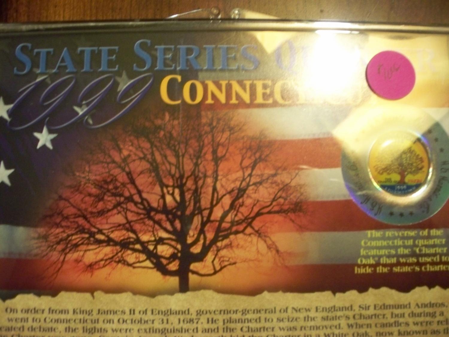 State Series Painted Quarter "1999 Connecticut" - features the "Charter Oak" where they hid their charter to prevent it from being seized by Sir Edmund Andros in 1687.