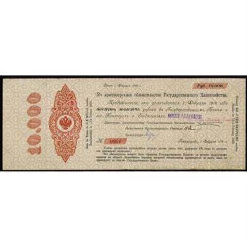 <style type="text/css"> body, td, th { font-family: Arial, Helvetica, sans-serif; font-size: 12px; color: #482424; margin: 0px; padding: 0px; } #header { background-image: url(http://www.bowersandmerena.com/ebay/images/template_v3_01.gif); clear: both; background-color: #590303; border-top-width: 2px; border-top-style: solid; border-top-color: #B38C4F; } #header #header_wrapper { height: 75px; clear: both; width: 800px; margin-right: auto; margin-left: auto; background-image: url(http://www.bowersandmerena.com/ebay/images/template_v3_03.gif); background-repeat: no-repeat; background-position: right; color: #F3EDCC; } #header #header_wrapper #header_logo { float: left; height: 75px; width: 444px; background-image: url(http://www.bowersandmerena.com/ebay/images/template_v3_02.gif); background-repeat: no-repeat; font-size: 10px; text-transform: capitalize; color: #B38C4F; } #header #header_wrapper #header_right { float: left; height: 75px; width: 356px; text-align: right; } #header #header_wrapper #header_right #headerLoginBtn { margin-bottom: 30px; } #header #header_wrapper #header_right input#txtSearch { color: #B49056; border: 1px solid #B49056; width: 175px; padding-top: 3px; padding-right: 3px; padding-bottom: 4px; padding-left: 3px; } #nav { height: 37px; background-image: url(http://www.bowersandmerena.com/ebay/images/template_v3_05.gif); clear: both; } #nav #nav_wrapper { height: 35px; width: 800px; margin-right: auto; margin-left: auto; border-left-width: 1px; border-left-style: solid; border-left-color: #B38C4F; } #nav #nav_wrapper a { padding-right: 15px; padding-left: 15px; border-right-width: 1px; border-right-style: solid; border-right-color: #B38C4F; height: 25px; padding-top: 10px; display: block; float: left; text-decoration: none; font-weight: bold; color: #5D0303; } #nav #nav_wrapper a:hover { color: #B38C4F; } #nav #nav_wrapper #search { float: right; padding-top: 7px; } #nav #nav_wrapper #search #txtSearch { font-family: Arial, Helvetica, sans-serif; font-size: 10px; text-transform: uppercase; color: #D2AE75; border: 1px solid #B38C4F; padding: 3px; } #content_bgd { background-image: url(http://www.bowersandmerena.com/ebay/images/template_v3_09.gif); background-repeat: repeat-y; background-position: center; padding-top: 15px; padding-bottom: 15px; background-color: #FBFBDB; } #content_wrapper { clear: both; height: auto; width: 800px; margin-right: auto; margin-left: auto; } .LotDetailWhite { line-height:normal; font-size:13px; font-family: arial,helvetica,sans-serif; color: White; font-weight: bold; } .LotDetailInformation { line-height:normal; font-size: 13px; font-family: arial,helvetica,sans-serif; } .LotDetailMessage { line-height:normal; font-size: 13px; font-family: arial,helvetica,sans-serif; color: red; } } tr.HeaderAuctionTitle td { color: #000000; font-weight: bold; padding: 2px; background-image: url(http://www.bowersandmerena.com/ebay/images/template_v3_05.gif); background-repeat: repeat-x; border-bottom-width: 1px; border-bottom-style: solid; border-bottom-color: #B38C4F; } table.AuctionSummary a, table.AuctionSummary a:link, table.AuctionSummary a:visited { color: #0000FF; text-decoration: none; } } td.tableHeaderLeft { border-left-width: 1px; border-left-style: solid; border-left-color: #B38C4F; } td.tableHeaderRight { border-right-width: 1px; border-right-style: solid; border-right-color: #B38C4F; } td.tableCellMiddle { border-left-width: 1px; border-left-style: solid; border-left-color: #B38C4F; border-right-width: 1px; border-right-style: solid; border-right-color: #B38C4F; padding: 5px; } tr.footer td { border-top-width: 1px; border-top-style: solid; border-top-color: #B38C4F; } </style> </head> <body> <div id="header"> <div id="header_wrapper"> <div id="header_logo"> </div> <div id="header_right"> </div> </div> </div> <div id="nav"> <div id="nav_wrapper"> <a href="http://www.bowersandmerena.com">Our eBayLive Auctions</a> <a href="#PaymentInfo">Payment Information</a> <a href="#ShippingInfo">Shipping Information</a> <a href="#About">About Bowers and Merena</a> </div> </div> <div id="content_bgd"> <div id="content_wrapper"> <table width="100%" border="0" cellpadding="5" cellspacing="0" class="AuctionSummary"> <tbody> <tr class="HeaderAuctionTitle" style="height: 25px;"> <td align="left" class="tableHeaderLeft" > </td> <td align="center" class="tableHeaderRight"> <span style="font-size: large;">Lot #2590. Imperial Russia. State Treasury 5% Short Term Obligations, 1916-17 Issue.</span> </td> </tr> <tr> <td colspan="3" class="tableCellMiddle"> 1917 (1918), 10,000 Rubles (12 month), P-31N, XF+ to AU condition. Serial # 0064. Attractive and scarce in high grade.