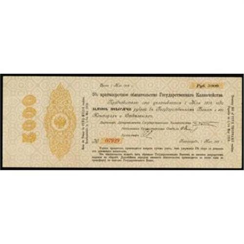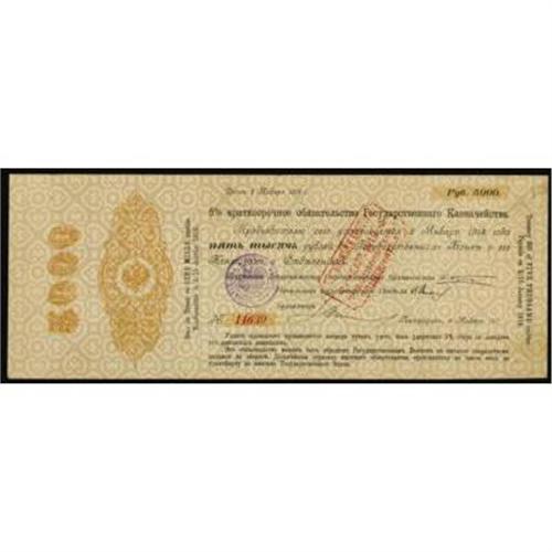 <style type="text/css"> body, td, th { font-family: Arial, Helvetica, sans-serif; font-size: 12px; color: #482424; margin: 0px; padding: 0px; } #header { background-image: url(http://www.bowersandmerena.com/ebay/images/template_v3_01.gif); clear: both; background-color: #590303; border-top-width: 2px; border-top-style: solid; border-top-color: #B38C4F; } #header #header_wrapper { height: 75px; clear: both; width: 800px; margin-right: auto; margin-left: auto; background-image: url(http://www.bowersandmerena.com/ebay/images/template_v3_03.gif); background-repeat: no-repeat; background-position: right; color: #F3EDCC; } #header #header_wrapper #header_logo { float: left; height: 75px; width: 444px; background-image: url(http://www.bowersandmerena.com/ebay/images/template_v3_02.gif); background-repeat: no-repeat; font-size: 10px; text-transform: capitalize; color: #B38C4F; } #header #header_wrapper #header_right { float: left; height: 75px; width: 356px; text-align: right; } #header #header_wrapper #header_right #headerLoginBtn { margin-bottom: 30px; } #header #header_wrapper #header_right input#txtSearch { color: #B49056; border: 1px solid #B49056; width: 175px; padding-top: 3px; padding-right: 3px; padding-bottom: 4px; padding-left: 3px; } #nav { height: 37px; background-image: url(http://www.bowersandmerena.com/ebay/images/template_v3_05.gif); clear: both; } #nav #nav_wrapper { height: 35px; width: 800px; margin-right: auto; margin-left: auto; border-left-width: 1px; border-left-style: solid; border-left-color: #B38C4F; } #nav #nav_wrapper a { padding-right: 15px; padding-left: 15px; border-right-width: 1px; border-right-style: solid; border-right-color: #B38C4F; height: 25px; padding-top: 10px; display: block; float: left; text-decoration: none; font-weight: bold; color: #5D0303; } #nav #nav_wrapper a:hover { color: #B38C4F; } #nav #nav_wrapper #search { float: right; padding-top: 7px; } #nav #nav_wrapper #search #txtSearch { font-family: Arial, Helvetica, sans-serif; font-size: 10px; text-transform: uppercase; color: #D2AE75; border: 1px solid #B38C4F; padding: 3px; } #content_bgd { background-image: url(http://www.bowersandmerena.com/ebay/images/template_v3_09.gif); background-repeat: repeat-y; background-position: center; padding-top: 15px; padding-bottom: 15px; background-color: #FBFBDB; } #content_wrapper { clear: both; height: auto; width: 800px; margin-right: auto; margin-left: auto; } .LotDetailWhite { line-height:normal; font-size:13px; font-family: arial,helvetica,sans-serif; color: White; font-weight: bold; } .LotDetailInformation { line-height:normal; font-size: 13px; font-family: arial,helvetica,sans-serif; } .LotDetailMessage { line-height:normal; font-size: 13px; font-family: arial,helvetica,sans-serif; color: red; } } tr.HeaderAuctionTitle td { color: #000000; font-weight: bold; padding: 2px; background-image: url(http://www.bowersandmerena.com/ebay/images/template_v3_05.gif); background-repeat: repeat-x; border-bottom-width: 1px; border-bottom-style: solid; border-bottom-color: #B38C4F; } table.AuctionSummary a, table.AuctionSummary a:link, table.AuctionSummary a:visited { color: #0000FF; text-decoration: none; } } td.tableHeaderLeft { border-left-width: 1px; border-left-style: solid; border-left-color: #B38C4F; } td.tableHeaderRight { border-right-width: 1px; border-right-style: solid; border-right-color: #B38C4F; } td.tableCellMiddle { border-left-width: 1px; border-left-style: solid; border-left-color: #B38C4F; border-right-width: 1px; border-right-style: solid; border-right-color: #B38C4F; padding: 5px; } tr.footer td { border-top-width: 1px; border-top-style: solid; border-top-color: #B38C4F; } </style> </head> <body> <div id="header"> <div id="header_wrapper"> <div id="header_logo"> </div> <div id="header_right"> </div> </div> </div> <div id="nav"> <div id="nav_wrapper"> <a href="http://www.bowersandmerena.com">Our eBayLive Auctions</a> <a href="#PaymentInfo">Payment Information</a> <a href="#ShippingInfo">Shipping Information</a> <a href="#About">About Bowers and Merena</a> </div> </div> <div id="content_bgd"> <div id="content_wrapper"> <table width="100%" border="0" cellpadding="5" cellspacing="0" class="AuctionSummary"> <tbody> <tr class="HeaderAuctionTitle" style="height: 25px;"> <td align="left" class="tableHeaderLeft" > </td> <td align="center" class="tableHeaderRight"> <span style="font-size: large;">Lot #2589. Imperial Russia. State Treasury 5% Short Term Obligations, 1916-17 Issue, One Unlisted Overprint Variety and the Second As Issued.</span> </td> </tr> <tr> <td colspan="3" class="tableCellMiddle"> Lot of 5 different notes made up of 2 different varieties. Both are dated 1917 (1918). Included is a 5,000 Rubles (12 month), P-31J in AU to AU+ condition; and, an unlisted overprint variety of the same note with a different date and unlisted purple circular and red rectangular overprints in AU to AU+ condition. Scarce pair of notes.