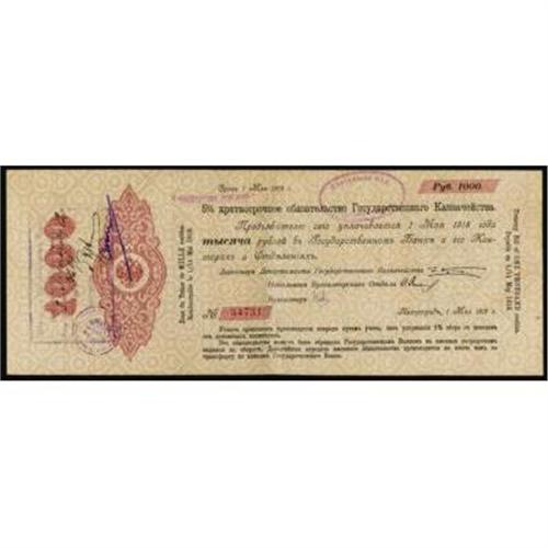 <style type="text/css"> body, td, th { font-family: Arial, Helvetica, sans-serif; font-size: 12px; color: #482424; margin: 0px; padding: 0px; } #header { background-image: url(http://www.bowersandmerena.com/ebay/images/template_v3_01.gif); clear: both; background-color: #590303; border-top-width: 2px; border-top-style: solid; border-top-color: #B38C4F; } #header #header_wrapper { height: 75px; clear: both; width: 800px; margin-right: auto; margin-left: auto; background-image: url(http://www.bowersandmerena.com/ebay/images/template_v3_03.gif); background-repeat: no-repeat; background-position: right; color: #F3EDCC; } #header #header_wrapper #header_logo { float: left; height: 75px; width: 444px; background-image: url(http://www.bowersandmerena.com/ebay/images/template_v3_02.gif); background-repeat: no-repeat; font-size: 10px; text-transform: capitalize; color: #B38C4F; } #header #header_wrapper #header_right { float: left; height: 75px; width: 356px; text-align: right; } #header #header_wrapper #header_right #headerLoginBtn { margin-bottom: 30px; } #header #header_wrapper #header_right input#txtSearch { color: #B49056; border: 1px solid #B49056; width: 175px; padding-top: 3px; padding-right: 3px; padding-bottom: 4px; padding-left: 3px; } #nav { height: 37px; background-image: url(http://www.bowersandmerena.com/ebay/images/template_v3_05.gif); clear: both; } #nav #nav_wrapper { height: 35px; width: 800px; margin-right: auto; margin-left: auto; border-left-width: 1px; border-left-style: solid; border-left-color: #B38C4F; } #nav #nav_wrapper a { padding-right: 15px; padding-left: 15px; border-right-width: 1px; border-right-style: solid; border-right-color: #B38C4F; height: 25px; padding-top: 10px; display: block; float: left; text-decoration: none; font-weight: bold; color: #5D0303; } #nav #nav_wrapper a:hover { color: #B38C4F; } #nav #nav_wrapper #search { float: right; padding-top: 7px; } #nav #nav_wrapper #search #txtSearch { font-family: Arial, Helvetica, sans-serif; font-size: 10px; text-transform: uppercase; color: #D2AE75; border: 1px solid #B38C4F; padding: 3px; } #content_bgd { background-image: url(http://www.bowersandmerena.com/ebay/images/template_v3_09.gif); background-repeat: repeat-y; background-position: center; padding-top: 15px; padding-bottom: 15px; background-color: #FBFBDB; } #content_wrapper { clear: both; height: auto; width: 800px; margin-right: auto; margin-left: auto; } .LotDetailWhite { line-height:normal; font-size:13px; font-family: arial,helvetica,sans-serif; color: White; font-weight: bold; } .LotDetailInformation { line-height:normal; font-size: 13px; font-family: arial,helvetica,sans-serif; } .LotDetailMessage { line-height:normal; font-size: 13px; font-family: arial,helvetica,sans-serif; color: red; } } tr.HeaderAuctionTitle td { color: #000000; font-weight: bold; padding: 2px; background-image: url(http://www.bowersandmerena.com/ebay/images/template_v3_05.gif); background-repeat: repeat-x; border-bottom-width: 1px; border-bottom-style: solid; border-bottom-color: #B38C4F; } table.AuctionSummary a, table.AuctionSummary a:link, table.AuctionSummary a:visited { color: #0000FF; text-decoration: none; } } td.tableHeaderLeft { border-left-width: 1px; border-left-style: solid; border-left-color: #B38C4F; } td.tableHeaderRight { border-right-width: 1px; border-right-style: solid; border-right-color: #B38C4F; } td.tableCellMiddle { border-left-width: 1px; border-left-style: solid; border-left-color: #B38C4F; border-right-width: 1px; border-right-style: solid; border-right-color: #B38C4F; padding: 5px; } tr.footer td { border-top-width: 1px; border-top-style: solid; border-top-color: #B38C4F; } </style> </head> <body> <div id="header"> <div id="header_wrapper"> <div id="header_logo"> </div> <div id="header_right"> </div> </div> </div> <div id="nav"> <div id="nav_wrapper"> <a href="http://www.bowersandmerena.com">Our eBayLive Auctions</a> <a href="#PaymentInfo">Payment Information</a> <a href="#ShippingInfo">Shipping Information</a> <a href="#About">About Bowers and Merena</a> </div> </div> <div id="content_bgd"> <div id="content_wrapper"> <table width="100%" border="0" cellpadding="5" cellspacing="0" class="AuctionSummary"> <tbody> <tr class="HeaderAuctionTitle" style="height: 25px;"> <td align="left" class="tableHeaderLeft" > </td> <td align="center" class="tableHeaderRight"> <span style="font-size: large;">Lot #2596. Imperial Russia. State Treasury, 5% Short-Term Obligations, 1916-17 (1918) Issue.</span> </td> </tr> <tr> <td colspan="3" class="tableCellMiddle"> May 1917 (1918), 1000 Rubles, P-31H, AU+ to Unc., a light vertical curvature in middle, (some may call it a light fold) keep this note from being a CU example. Rare in this condition.
