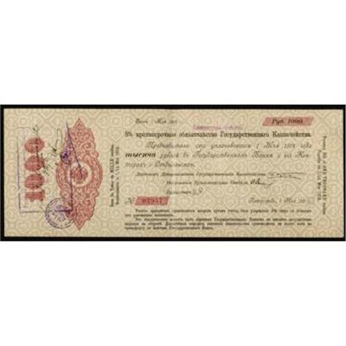 <style type="text/css"> body, td, th { font-family: Arial, Helvetica, sans-serif; font-size: 12px; color: #482424; margin: 0px; padding: 0px; } #header { background-image: url(http://www.bowersandmerena.com/ebay/images/template_v3_01.gif); clear: both; background-color: #590303; border-top-width: 2px; border-top-style: solid; border-top-color: #B38C4F; } #header #header_wrapper { height: 75px; clear: both; width: 800px; margin-right: auto; margin-left: auto; background-image: url(http://www.bowersandmerena.com/ebay/images/template_v3_03.gif); background-repeat: no-repeat; background-position: right; color: #F3EDCC; } #header #header_wrapper #header_logo { float: left; height: 75px; width: 444px; background-image: url(http://www.bowersandmerena.com/ebay/images/template_v3_02.gif); background-repeat: no-repeat; font-size: 10px; text-transform: capitalize; color: #B38C4F; } #header #header_wrapper #header_right { float: left; height: 75px; width: 356px; text-align: right; } #header #header_wrapper #header_right #headerLoginBtn { margin-bottom: 30px; } #header #header_wrapper #header_right input#txtSearch { color: #B49056; border: 1px solid #B49056; width: 175px; padding-top: 3px; padding-right: 3px; padding-bottom: 4px; padding-left: 3px; } #nav { height: 37px; background-image: url(http://www.bowersandmerena.com/ebay/images/template_v3_05.gif); clear: both; } #nav #nav_wrapper { height: 35px; width: 800px; margin-right: auto; margin-left: auto; border-left-width: 1px; border-left-style: solid; border-left-color: #B38C4F; } #nav #nav_wrapper a { padding-right: 15px; padding-left: 15px; border-right-width: 1px; border-right-style: solid; border-right-color: #B38C4F; height: 25px; padding-top: 10px; display: block; float: left; text-decoration: none; font-weight: bold; color: #5D0303; } #nav #nav_wrapper a:hover { color: #B38C4F; } #nav #nav_wrapper #search { float: right; padding-top: 7px; } #nav #nav_wrapper #search #txtSearch { font-family: Arial, Helvetica, sans-serif; font-size: 10px; text-transform: uppercase; color: #D2AE75; border: 1px solid #B38C4F; padding: 3px; } #content_bgd { background-image: url(http://www.bowersandmerena.com/ebay/images/template_v3_09.gif); background-repeat: repeat-y; background-position: center; padding-top: 15px; padding-bottom: 15px; background-color: #FBFBDB; } #content_wrapper { clear: both; height: auto; width: 800px; margin-right: auto; margin-left: auto; } .LotDetailWhite { line-height:normal; font-size:13px; font-family: arial,helvetica,sans-serif; color: White; font-weight: bold; } .LotDetailInformation { line-height:normal; font-size: 13px; font-family: arial,helvetica,sans-serif; } .LotDetailMessage { line-height:normal; font-size: 13px; font-family: arial,helvetica,sans-serif; color: red; } } tr.HeaderAuctionTitle td { color: #000000; font-weight: bold; padding: 2px; background-image: url(http://www.bowersandmerena.com/ebay/images/template_v3_05.gif); background-repeat: repeat-x; border-bottom-width: 1px; border-bottom-style: solid; border-bottom-color: #B38C4F; } table.AuctionSummary a, table.AuctionSummary a:link, table.AuctionSummary a:visited { color: #0000FF; text-decoration: none; } } td.tableHeaderLeft { border-left-width: 1px; border-left-style: solid; border-left-color: #B38C4F; } td.tableHeaderRight { border-right-width: 1px; border-right-style: solid; border-right-color: #B38C4F; } td.tableCellMiddle { border-left-width: 1px; border-left-style: solid; border-left-color: #B38C4F; border-right-width: 1px; border-right-style: solid; border-right-color: #B38C4F; padding: 5px; } tr.footer td { border-top-width: 1px; border-top-style: solid; border-top-color: #B38C4F; } </style> </head> <body> <div id="header"> <div id="header_wrapper"> <div id="header_logo"> </div> <div id="header_right"> </div> </div> </div> <div id="nav"> <div id="nav_wrapper"> <a href="http://www.bowersandmerena.com">Our eBayLive Auctions</a> <a href="#PaymentInfo">Payment Information</a> <a href="#ShippingInfo">Shipping Information</a> <a href="#About">About Bowers and Merena</a> </div> </div> <div id="content_bgd"> <div id="content_wrapper"> <table width="100%" border="0" cellpadding="5" cellspacing="0" class="AuctionSummary"> <tbody> <tr class="HeaderAuctionTitle" style="height: 25px;"> <td align="left" class="tableHeaderLeft" > </td> <td align="center" class="tableHeaderRight"> <span style="font-size: large;">Lot #2597. Imperial Russia. State Treasury, 5% Short-Term Obligations, 1916-17 (1918) Issue.</span> </td> </tr> <tr> <td colspan="3" class="tableCellMiddle"> May 1917 (1918), 1000 Rubles, P-31H, AU+ to Unc., a light vertical curvature in middle, (some may call it a light fold) keep this note from being a CU example. Rare in this condition.
