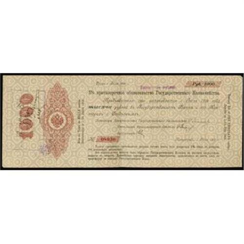 <style type="text/css"> body, td, th { font-family: Arial, Helvetica, sans-serif; font-size: 12px; color: #482424; margin: 0px; padding: 0px; } #header { background-image: url(http://www.bowersandmerena.com/ebay/images/template_v3_01.gif); clear: both; background-color: #590303; border-top-width: 2px; border-top-style: solid; border-top-color: #B38C4F; } #header #header_wrapper { height: 75px; clear: both; width: 800px; margin-right: auto; margin-left: auto; background-image: url(http://www.bowersandmerena.com/ebay/images/template_v3_03.gif); background-repeat: no-repeat; background-position: right; color: #F3EDCC; } #header #header_wrapper #header_logo { float: left; height: 75px; width: 444px; background-image: url(http://www.bowersandmerena.com/ebay/images/template_v3_02.gif); background-repeat: no-repeat; font-size: 10px; text-transform: capitalize; color: #B38C4F; } #header #header_wrapper #header_right { float: left; height: 75px; width: 356px; text-align: right; } #header #header_wrapper #header_right #headerLoginBtn { margin-bottom: 30px; } #header #header_wrapper #header_right input#txtSearch { color: #B49056; border: 1px solid #B49056; width: 175px; padding-top: 3px; padding-right: 3px; padding-bottom: 4px; padding-left: 3px; } #nav { height: 37px; background-image: url(http://www.bowersandmerena.com/ebay/images/template_v3_05.gif); clear: both; } #nav #nav_wrapper { height: 35px; width: 800px; margin-right: auto; margin-left: auto; border-left-width: 1px; border-left-style: solid; border-left-color: #B38C4F; } #nav #nav_wrapper a { padding-right: 15px; padding-left: 15px; border-right-width: 1px; border-right-style: solid; border-right-color: #B38C4F; height: 25px; padding-top: 10px; display: block; float: left; text-decoration: none; font-weight: bold; color: #5D0303; } #nav #nav_wrapper a:hover { color: #B38C4F; } #nav #nav_wrapper #search { float: right; padding-top: 7px; } #nav #nav_wrapper #search #txtSearch { font-family: Arial, Helvetica, sans-serif; font-size: 10px; text-transform: uppercase; color: #D2AE75; border: 1px solid #B38C4F; padding: 3px; } #content_bgd { background-image: url(http://www.bowersandmerena.com/ebay/images/template_v3_09.gif); background-repeat: repeat-y; background-position: center; padding-top: 15px; padding-bottom: 15px; background-color: #FBFBDB; } #content_wrapper { clear: both; height: auto; width: 800px; margin-right: auto; margin-left: auto; } .LotDetailWhite { line-height:normal; font-size:13px; font-family: arial,helvetica,sans-serif; color: White; font-weight: bold; } .LotDetailInformation { line-height:normal; font-size: 13px; font-family: arial,helvetica,sans-serif; } .LotDetailMessage { line-height:normal; font-size: 13px; font-family: arial,helvetica,sans-serif; color: red; } } tr.HeaderAuctionTitle td { color: #000000; font-weight: bold; padding: 2px; background-image: url(http://www.bowersandmerena.com/ebay/images/template_v3_05.gif); background-repeat: repeat-x; border-bottom-width: 1px; border-bottom-style: solid; border-bottom-color: #B38C4F; } table.AuctionSummary a, table.AuctionSummary a:link, table.AuctionSummary a:visited { color: #0000FF; text-decoration: none; } } td.tableHeaderLeft { border-left-width: 1px; border-left-style: solid; border-left-color: #B38C4F; } td.tableHeaderRight { border-right-width: 1px; border-right-style: solid; border-right-color: #B38C4F; } td.tableCellMiddle { border-left-width: 1px; border-left-style: solid; border-left-color: #B38C4F; border-right-width: 1px; border-right-style: solid; border-right-color: #B38C4F; padding: 5px; } tr.footer td { border-top-width: 1px; border-top-style: solid; border-top-color: #B38C4F; } </style> </head> <body> <div id="header"> <div id="header_wrapper"> <div id="header_logo"> </div> <div id="header_right"> </div> </div> </div> <div id="nav"> <div id="nav_wrapper"> <a href="http://www.bowersandmerena.com">Our eBayLive Auctions</a> <a href="#PaymentInfo">Payment Information</a> <a href="#ShippingInfo">Shipping Information</a> <a href="#About">About Bowers and Merena</a> </div> </div> <div id="content_bgd"> <div id="content_wrapper"> <table width="100%" border="0" cellpadding="5" cellspacing="0" class="AuctionSummary"> <tbody> <tr class="HeaderAuctionTitle" style="height: 25px;"> <td align="left" class="tableHeaderLeft" > </td> <td align="center" class="tableHeaderRight"> <span style="font-size: large;">Lot #2598. Imperial Russia. State Treasury, 5% Short-Term Obligations, 1916-17 (1918) Issue.</span> </td> </tr> <tr> <td colspan="3" class="tableCellMiddle"> July 1917 (1918), 1000 Rubles, P-31H, AU+ to Unc. a light vertical curvature in middle, (some may call it a light fold) keep this note from being a CU example. Rare in this condition.