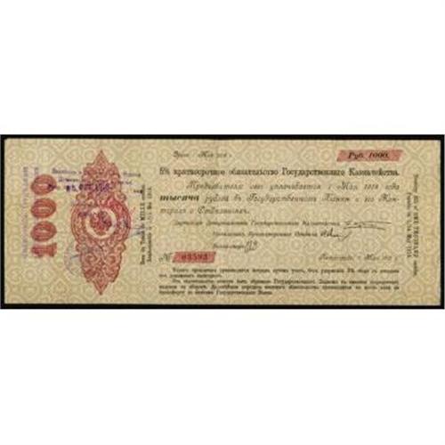 <style type="text/css"> body, td, th { font-family: Arial, Helvetica, sans-serif; font-size: 12px; color: #482424; margin: 0px; padding: 0px; } #header { background-image: url(http://www.bowersandmerena.com/ebay/images/template_v3_01.gif); clear: both; background-color: #590303; border-top-width: 2px; border-top-style: solid; border-top-color: #B38C4F; } #header #header_wrapper { height: 75px; clear: both; width: 800px; margin-right: auto; margin-left: auto; background-image: url(http://www.bowersandmerena.com/ebay/images/template_v3_03.gif); background-repeat: no-repeat; background-position: right; color: #F3EDCC; } #header #header_wrapper #header_logo { float: left; height: 75px; width: 444px; background-image: url(http://www.bowersandmerena.com/ebay/images/template_v3_02.gif); background-repeat: no-repeat; font-size: 10px; text-transform: capitalize; color: #B38C4F; } #header #header_wrapper #header_right { float: left; height: 75px; width: 356px; text-align: right; } #header #header_wrapper #header_right #headerLoginBtn { margin-bottom: 30px; } #header #header_wrapper #header_right input#txtSearch { color: #B49056; border: 1px solid #B49056; width: 175px; padding-top: 3px; padding-right: 3px; padding-bottom: 4px; padding-left: 3px; } #nav { height: 37px; background-image: url(http://www.bowersandmerena.com/ebay/images/template_v3_05.gif); clear: both; } #nav #nav_wrapper { height: 35px; width: 800px; margin-right: auto; margin-left: auto; border-left-width: 1px; border-left-style: solid; border-left-color: #B38C4F; } #nav #nav_wrapper a { padding-right: 15px; padding-left: 15px; border-right-width: 1px; border-right-style: solid; border-right-color: #B38C4F; height: 25px; padding-top: 10px; display: block; float: left; text-decoration: none; font-weight: bold; color: #5D0303; } #nav #nav_wrapper a:hover { color: #B38C4F; } #nav #nav_wrapper #search { float: right; padding-top: 7px; } #nav #nav_wrapper #search #txtSearch { font-family: Arial, Helvetica, sans-serif; font-size: 10px; text-transform: uppercase; color: #D2AE75; border: 1px solid #B38C4F; padding: 3px; } #content_bgd { background-image: url(http://www.bowersandmerena.com/ebay/images/template_v3_09.gif); background-repeat: repeat-y; background-position: center; padding-top: 15px; padding-bottom: 15px; background-color: #FBFBDB; } #content_wrapper { clear: both; height: auto; width: 800px; margin-right: auto; margin-left: auto; } .LotDetailWhite { line-height:normal; font-size:13px; font-family: arial,helvetica,sans-serif; color: White; font-weight: bold; } .LotDetailInformation { line-height:normal; font-size: 13px; font-family: arial,helvetica,sans-serif; } .LotDetailMessage { line-height:normal; font-size: 13px; font-family: arial,helvetica,sans-serif; color: red; } } tr.HeaderAuctionTitle td { color: #000000; font-weight: bold; padding: 2px; background-image: url(http://www.bowersandmerena.com/ebay/images/template_v3_05.gif); background-repeat: repeat-x; border-bottom-width: 1px; border-bottom-style: solid; border-bottom-color: #B38C4F; } table.AuctionSummary a, table.AuctionSummary a:link, table.AuctionSummary a:visited { color: #0000FF; text-decoration: none; } } td.tableHeaderLeft { border-left-width: 1px; border-left-style: solid; border-left-color: #B38C4F; } td.tableHeaderRight { border-right-width: 1px; border-right-style: solid; border-right-color: #B38C4F; } td.tableCellMiddle { border-left-width: 1px; border-left-style: solid; border-left-color: #B38C4F; border-right-width: 1px; border-right-style: solid; border-right-color: #B38C4F; padding: 5px; } tr.footer td { border-top-width: 1px; border-top-style: solid; border-top-color: #B38C4F; } </style> </head> <body> <div id="header"> <div id="header_wrapper"> <div id="header_logo"> </div> <div id="header_right"> </div> </div> </div> <div id="nav"> <div id="nav_wrapper"> <a href="http://www.bowersandmerena.com">Our eBayLive Auctions</a> <a href="#PaymentInfo">Payment Information</a> <a href="#ShippingInfo">Shipping Information</a> <a href="#About">About Bowers and Merena</a> </div> </div> <div id="content_bgd"> <div id="content_wrapper"> <table width="100%" border="0" cellpadding="5" cellspacing="0" class="AuctionSummary"> <tbody> <tr class="HeaderAuctionTitle" style="height: 25px;"> <td align="left" class="tableHeaderLeft" > </td> <td align="center" class="tableHeaderRight"> <span style="font-size: large;">Lot #2601. Imperial Russia. State Treasury, 5% Short-Term Obligations, 1916-17 (1918) Issue.</span> </td> </tr> <tr> <td colspan="3" class="tableCellMiddle"> Lot of 3 notes. Dated May, July and September 1917 (1918), 1000 Rubles, P-31H, VF to AU condition.