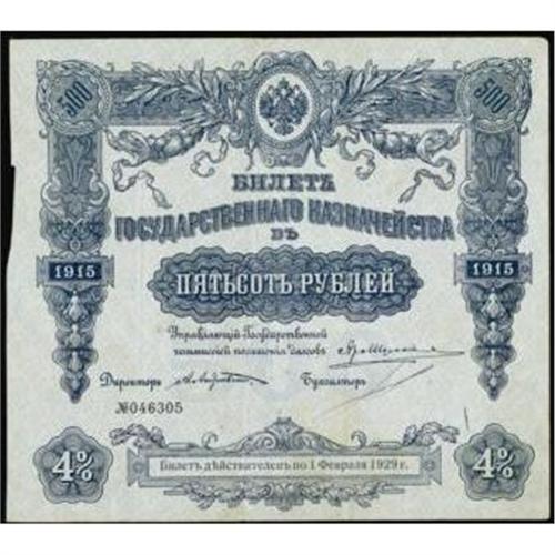 <style type="text/css"> body, td, th { font-family: Arial, Helvetica, sans-serif; font-size: 12px; color: #482424; margin: 0px; padding: 0px; } #header { background-image: url(http://www.bowersandmerena.com/ebay/images/template_v3_01.gif); clear: both; background-color: #590303; border-top-width: 2px; border-top-style: solid; border-top-color: #B38C4F; } #header #header_wrapper { height: 75px; clear: both; width: 800px; margin-right: auto; margin-left: auto; background-image: url(http://www.bowersandmerena.com/ebay/images/template_v3_03.gif); background-repeat: no-repeat; background-position: right; color: #F3EDCC; } #header #header_wrapper #header_logo { float: left; height: 75px; width: 444px; background-image: url(http://www.bowersandmerena.com/ebay/images/template_v3_02.gif); background-repeat: no-repeat; font-size: 10px; text-transform: capitalize; color: #B38C4F; } #header #header_wrapper #header_right { float: left; height: 75px; width: 356px; text-align: right; } #header #header_wrapper #header_right #headerLoginBtn { margin-bottom: 30px; } #header #header_wrapper #header_right input#txtSearch { color: #B49056; border: 1px solid #B49056; width: 175px; padding-top: 3px; padding-right: 3px; padding-bottom: 4px; padding-left: 3px; } #nav { height: 37px; background-image: url(http://www.bowersandmerena.com/ebay/images/template_v3_05.gif); clear: both; } #nav #nav_wrapper { height: 35px; width: 800px; margin-right: auto; margin-left: auto; border-left-width: 1px; border-left-style: solid; border-left-color: #B38C4F; } #nav #nav_wrapper a { padding-right: 15px; padding-left: 15px; border-right-width: 1px; border-right-style: solid; border-right-color: #B38C4F; height: 25px; padding-top: 10px; display: block; float: left; text-decoration: none; font-weight: bold; color: #5D0303; } #nav #nav_wrapper a:hover { color: #B38C4F; } #nav #nav_wrapper #search { float: right; padding-top: 7px; } #nav #nav_wrapper #search #txtSearch { font-family: Arial, Helvetica, sans-serif; font-size: 10px; text-transform: uppercase; color: #D2AE75; border: 1px solid #B38C4F; padding: 3px; } #content_bgd { background-image: url(http://www.bowersandmerena.com/ebay/images/template_v3_09.gif); background-repeat: repeat-y; background-position: center; padding-top: 15px; padding-bottom: 15px; background-color: #FBFBDB; } #content_wrapper { clear: both; height: auto; width: 800px; margin-right: auto; margin-left: auto; } .LotDetailWhite { line-height:normal; font-size:13px; font-family: arial,helvetica,sans-serif; color: White; font-weight: bold; } .LotDetailInformation { line-height:normal; font-size: 13px; font-family: arial,helvetica,sans-serif; } .LotDetailMessage { line-height:normal; font-size: 13px; font-family: arial,helvetica,sans-serif; color: red; } } tr.HeaderAuctionTitle td { color: #000000; font-weight: bold; padding: 2px; background-image: url(http://www.bowersandmerena.com/ebay/images/template_v3_05.gif); background-repeat: repeat-x; border-bottom-width: 1px; border-bottom-style: solid; border-bottom-color: #B38C4F; } table.AuctionSummary a, table.AuctionSummary a:link, table.AuctionSummary a:visited { color: #0000FF; text-decoration: none; } } td.tableHeaderLeft { border-left-width: 1px; border-left-style: solid; border-left-color: #B38C4F; } td.tableHeaderRight { border-right-width: 1px; border-right-style: solid; border-right-color: #B38C4F; } td.tableCellMiddle { border-left-width: 1px; border-left-style: solid; border-left-color: #B38C4F; border-right-width: 1px; border-right-style: solid; border-right-color: #B38C4F; padding: 5px; } tr.footer td { border-top-width: 1px; border-top-style: solid; border-top-color: #B38C4F; } </style> </head> <body> <div id="header"> <div id="header_wrapper"> <div id="header_logo"> </div> <div id="header_right"> </div> </div> </div> <div id="nav"> <div id="nav_wrapper"> <a href="http://www.bowersandmerena.com">Our eBayLive Auctions</a> <a href="#PaymentInfo">Payment Information</a> <a href="#ShippingInfo">Shipping Information</a> <a href="#About">About Bowers and Merena</a> </div> </div> <div id="content_bgd"> <div id="content_wrapper"> <table width="100%" border="0" cellpadding="5" cellspacing="0" class="AuctionSummary"> <tbody> <tr class="HeaderAuctionTitle" style="height: 25px;"> <td align="left" class="tableHeaderLeft" > </td> <td align="center" class="tableHeaderRight"> <span style="font-size: large;">Lot #2621. Russian Federation. State Treasury Notes, 1908-1916 (1918) Issues.</span> </td> </tr> <tr> <td colspan="3" class="tableCellMiddle"> 1915 (1918), 500 Rubles, P-59, XF to XF+ condition. Black on blue underprint.