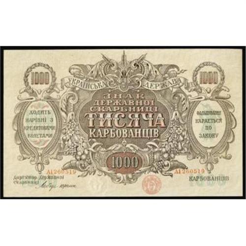 <style type="text/css"> body, td, th { font-family: Arial, Helvetica, sans-serif; font-size: 12px; color: #482424; margin: 0px; padding: 0px; } #header { background-image: url(http://www.bowersandmerena.com/ebay/images/template_v3_01.gif); clear: both; background-color: #590303; border-top-width: 2px; border-top-style: solid; border-top-color: #B38C4F; } #header #header_wrapper { height: 75px; clear: both; width: 800px; margin-right: auto; margin-left: auto; background-image: url(http://www.bowersandmerena.com/ebay/images/template_v3_03.gif); background-repeat: no-repeat; background-position: right; color: #F3EDCC; } #header #header_wrapper #header_logo { float: left; height: 75px; width: 444px; background-image: url(http://www.bowersandmerena.com/ebay/images/template_v3_02.gif); background-repeat: no-repeat; font-size: 10px; text-transform: capitalize; color: #B38C4F; } #header #header_wrapper #header_right { float: left; height: 75px; width: 356px; text-align: right; } #header #header_wrapper #header_right #headerLoginBtn { margin-bottom: 30px; } #header #header_wrapper #header_right input#txtSearch { color: #B49056; border: 1px solid #B49056; width: 175px; padding-top: 3px; padding-right: 3px; padding-bottom: 4px; padding-left: 3px; } #nav { height: 37px; background-image: url(http://www.bowersandmerena.com/ebay/images/template_v3_05.gif); clear: both; } #nav #nav_wrapper { height: 35px; width: 800px; margin-right: auto; margin-left: auto; border-left-width: 1px; border-left-style: solid; border-left-color: #B38C4F; } #nav #nav_wrapper a { padding-right: 15px; padding-left: 15px; border-right-width: 1px; border-right-style: solid; border-right-color: #B38C4F; height: 25px; padding-top: 10px; display: block; float: left; text-decoration: none; font-weight: bold; color: #5D0303; } #nav #nav_wrapper a:hover { color: #B38C4F; } #nav #nav_wrapper #search { float: right; padding-top: 7px; } #nav #nav_wrapper #search #txtSearch { font-family: Arial, Helvetica, sans-serif; font-size: 10px; text-transform: uppercase; color: #D2AE75; border: 1px solid #B38C4F; padding: 3px; } #content_bgd { background-image: url(http://www.bowersandmerena.com/ebay/images/template_v3_09.gif); background-repeat: repeat-y; background-position: center; padding-top: 15px; padding-bottom: 15px; background-color: #FBFBDB; } #content_wrapper { clear: both; height: auto; width: 800px; margin-right: auto; margin-left: auto; } .LotDetailWhite { line-height:normal; font-size:13px; font-family: arial,helvetica,sans-serif; color: White; font-weight: bold; } .LotDetailInformation { line-height:normal; font-size: 13px; font-family: arial,helvetica,sans-serif; } .LotDetailMessage { line-height:normal; font-size: 13px; font-family: arial,helvetica,sans-serif; color: red; } } tr.HeaderAuctionTitle td { color: #000000; font-weight: bold; padding: 2px; background-image: url(http://www.bowersandmerena.com/ebay/images/template_v3_05.gif); background-repeat: repeat-x; border-bottom-width: 1px; border-bottom-style: solid; border-bottom-color: #B38C4F; } table.AuctionSummary a, table.AuctionSummary a:link, table.AuctionSummary a:visited { color: #0000FF; text-decoration: none; } } td.tableHeaderLeft { border-left-width: 1px; border-left-style: solid; border-left-color: #B38C4F; } td.tableHeaderRight { border-right-width: 1px; border-right-style: solid; border-right-color: #B38C4F; } td.tableCellMiddle { border-left-width: 1px; border-left-style: solid; border-left-color: #B38C4F; border-right-width: 1px; border-right-style: solid; border-right-color: #B38C4F; padding: 5px; } tr.footer td { border-top-width: 1px; border-top-style: solid; border-top-color: #B38C4F; } </style> </head> <body> <div id="header"> <div id="header_wrapper"> <div id="header_logo"> </div> <div id="header_right"> </div> </div> </div> <div id="nav"> <div id="nav_wrapper"> <a href="http://www.bowersandmerena.com">Our eBayLive Auctions</a> <a href="#PaymentInfo">Payment Information</a> <a href="#ShippingInfo">Shipping Information</a> <a href="#About">About Bowers and Merena</a> </div> </div> <div id="content_bgd"> <div id="content_wrapper"> <table width="100%" border="0" cellpadding="5" cellspacing="0" class="AuctionSummary"> <tbody> <tr class="HeaderAuctionTitle" style="height: 25px;"> <td align="left" class="tableHeaderLeft" > </td> <td align="center" class="tableHeaderRight"> <span style="font-size: large;">Lot #2048. Ukraine. State Treasury Notes, 1918 ND Issue.</span> </td> </tr> <tr> <td colspan="3" class="tableCellMiddle"> Lot of 4 notes, all 1918 Issues. 1000 Karbovantsiv, P-35. Different printing and color varieties included. All are in Unc. to CU condition with one AU.