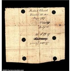 State of Massachusetts Bay $10 Feb. 19, 1777 Anderson MA-6A Treasurer's 6% "Bounty Note" printed by Benjamin Eades, to be paid on Dec. 6, 1780 with interest. Signed by the Treasurer, Henry Gardner, and countersigned by William Cooper and N. Appleton. Very Fine, with six hole punch cancels. Important notice: We expect to be auctioning lots at the rate of 200-250 per hour. Sometimes eBay Premier live bid software cannot keep up with that pace, so we strongly recommend that you place a realistic proxy bid now as insurance to avoid disappointment. Also please note that all Heritage/CAA lots purchased through eBay Premier carry a 20% Buyer's Premium. Please make sure you read the Terms and Conditions.