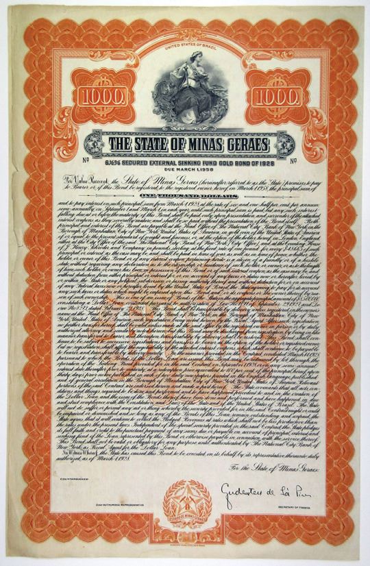 State of Minas Geraes 1928 Specimen-Proof Bond