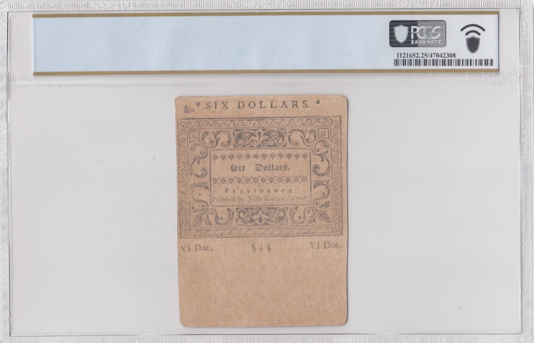 State of Rhode Island and Providence Plantations. Providence. September 5, 1776. Six Dollars. Fr. RI-250. PCGS Very Fine-25 Details. No qualifiers. As illustrated.