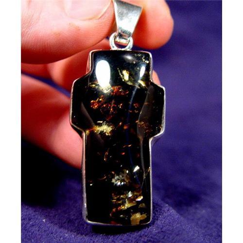 ... Stately Cognac Baltic Amber CROSS Sterling Pendant .....