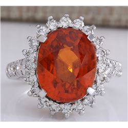 11.09 CTW Natural Mandarin Garnet And Diamond Ring In14k White Gold