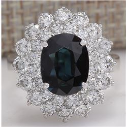 4.97CTW Natural Blue Sapphire Diamond Ring 14K Solid White Gold