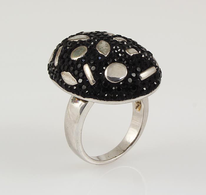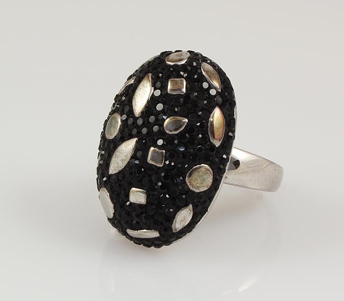 Statement Silver Ring with 8.00ctw Black Czech Crystal **|**|** 29.37x21.50mm in diameter Solid Rhodium Plated 925 Silver Ring with Black Czech Crystal Stone Design Size 8 ; MSRP: $300