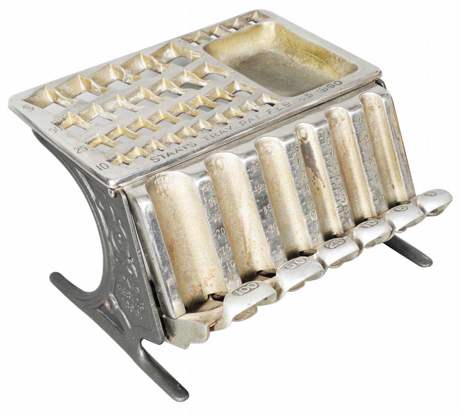 Statts Cast Iron Coin Changer. Patented Feb 25, 1890. Excellent original condition.11 X 6 1/2 X 9 inches.