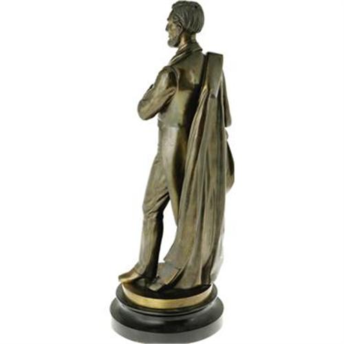 <B>Metal Statue of Lincoln Holding Emancipation Proclamation.</B></I> Plated cast metal, on black metal base, 22" tall, no artist or foundry marks present, in fine condition. Nicely executed portrayal of Lincoln holding a quill pens in his right hand and a copy of the Emancipation Proclamation in his other. His mantle hangs from his right shoulder and drapes behind him. The statue is loose on the base but can be fixed by tightening the base screw.<BR><BR><b>Shipping:</b> Miscellaneous Collectibles, Larg (<a target="_blank" href="http://www.heritageauctions.com/common/shipping.php">view shipping information</a>)