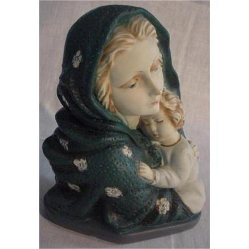 Soft, gentle looking plaster of paris Madonna & Child. Lovely flowers painted onto the Madonna's blue veil. Beautiful delicate and serene faces with fair complexion. Very attractive. Not chipped or faded. Light weight for shipping. Tag on bottom reads "Made in Italy".