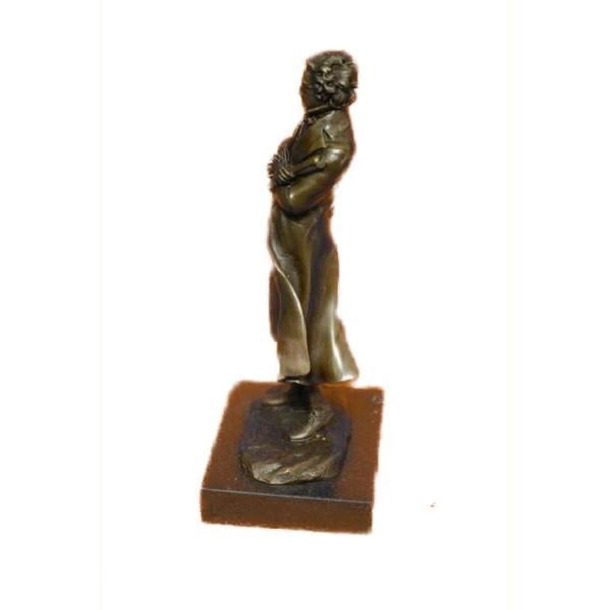 This heavily detailed, classically styled statue of Thomas Jefferson makes a handsome addition to any decor. He is cast using a special hot casting process made of 100% actual bronze for the look and feel of expensive masterpiece. Standing proudly at 8.5" tall. This sculpture was cast using the ancient old "Lost wax method" stained in brown patina finish for preservation. He is mounted atop a black marble base and is signed by artist Milo Condition : this sculpture is in perfect condition. Bronze dimensions with marble base:height 8 1/2" x width 4" marble dimensions: 4" x 3". Height without base: 7 1/2" weight : 4 lbs