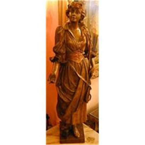 Terracotta Statue of Woman with Mandolin. Marked B.S.K. 1307. Lovely features and workmanship.