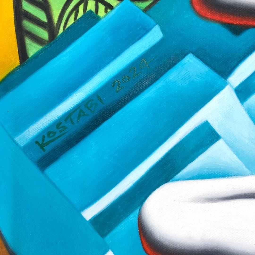 "Stay with Me" is an original oil painting on canvas by Mark Kostabi, hand signed by the artist. This piece comes custom framed. Includes Certificate of Authenticity. Measures approx. 30" x 30" (frame), 20" x 20" (image).
