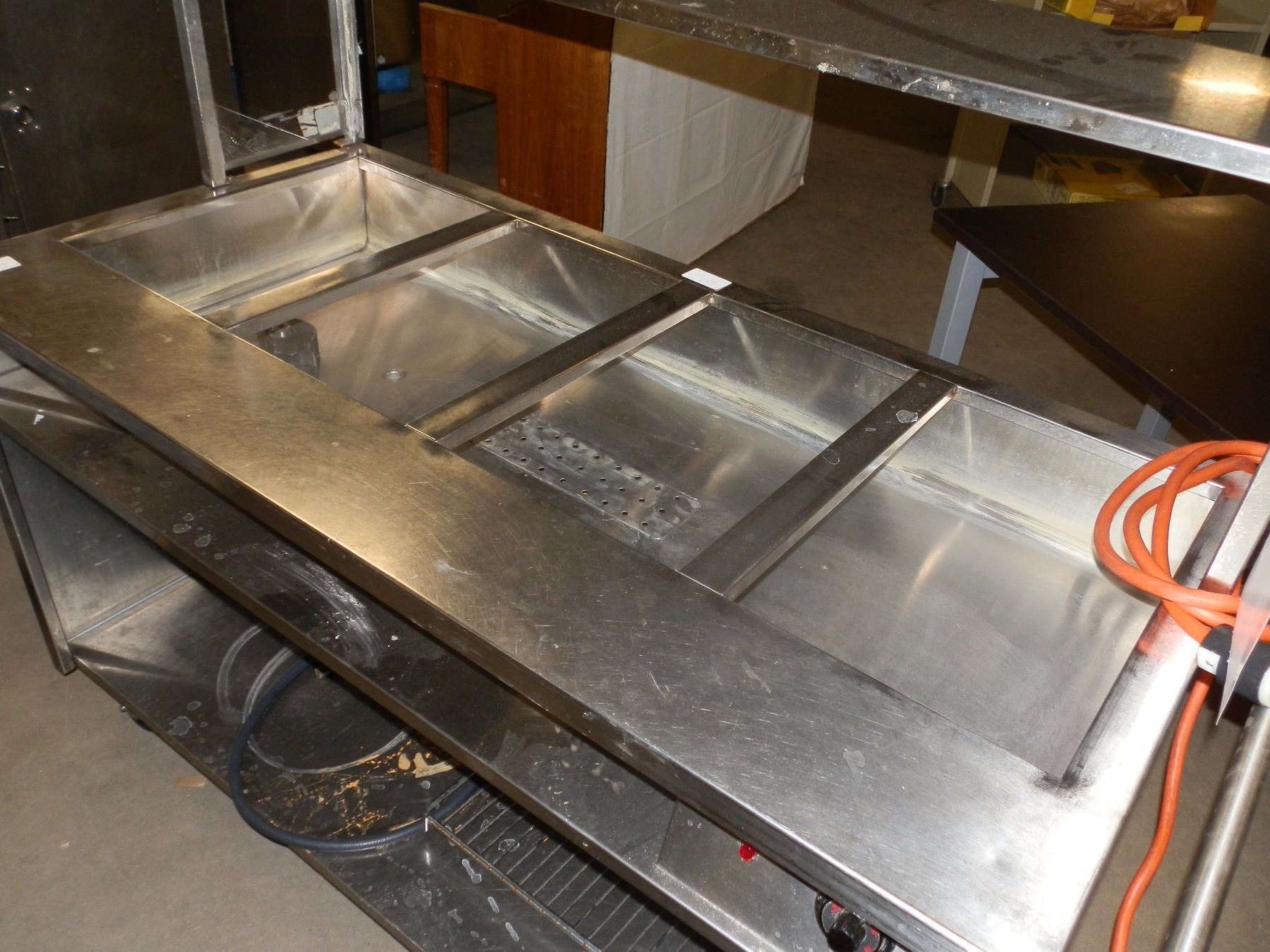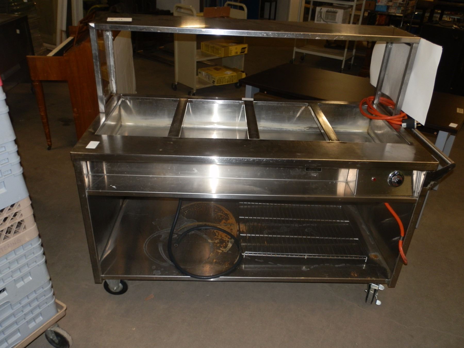Stainless steel 4 bay electric steam table on wheels...condition unknown...used