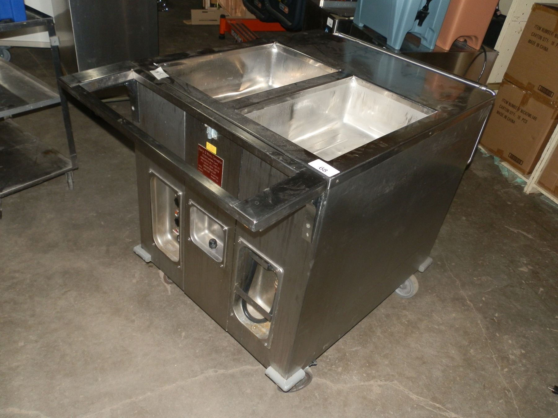 Stainless steel 2 bay steam table on wheels, also has two warmer drawers...Used... sold as is...