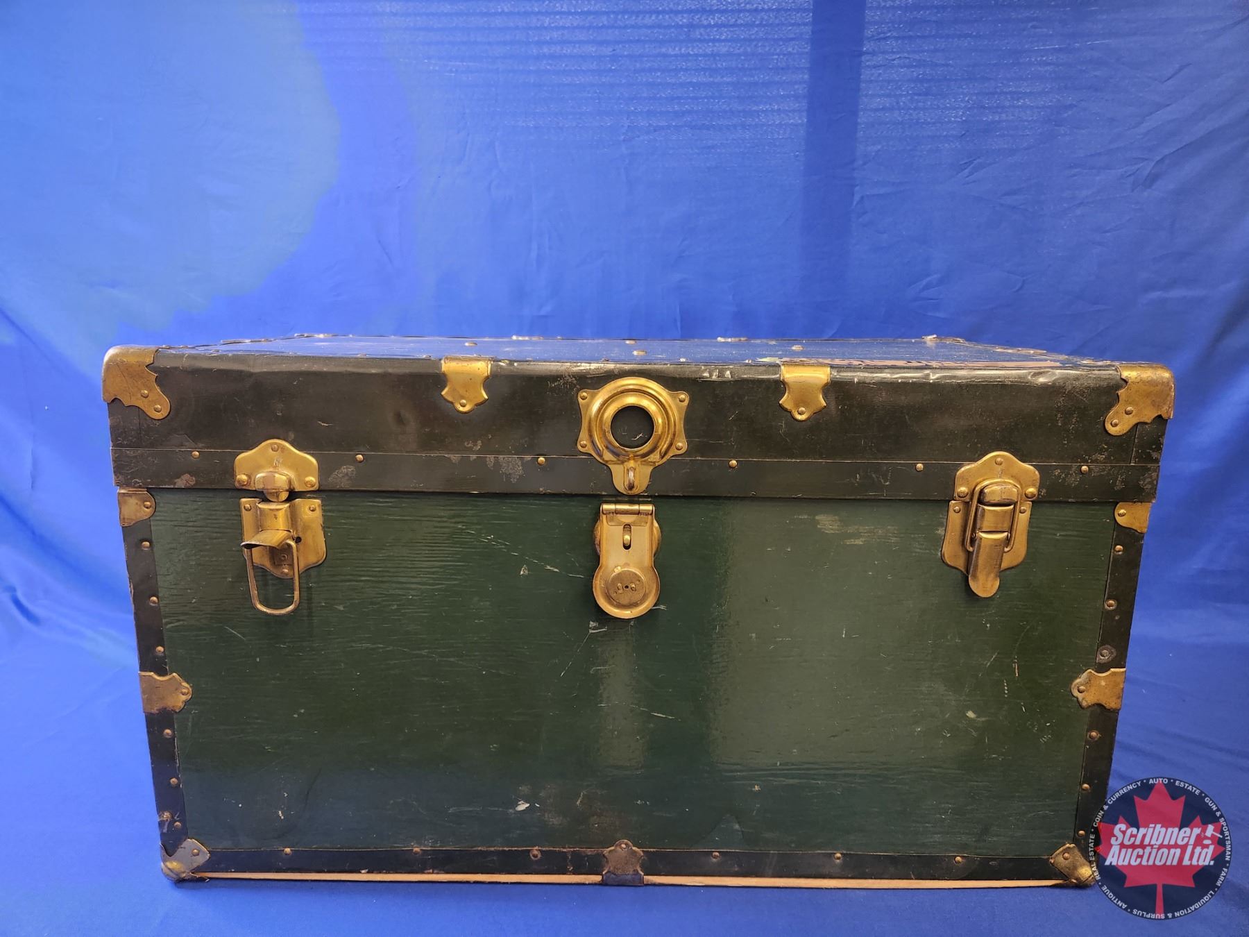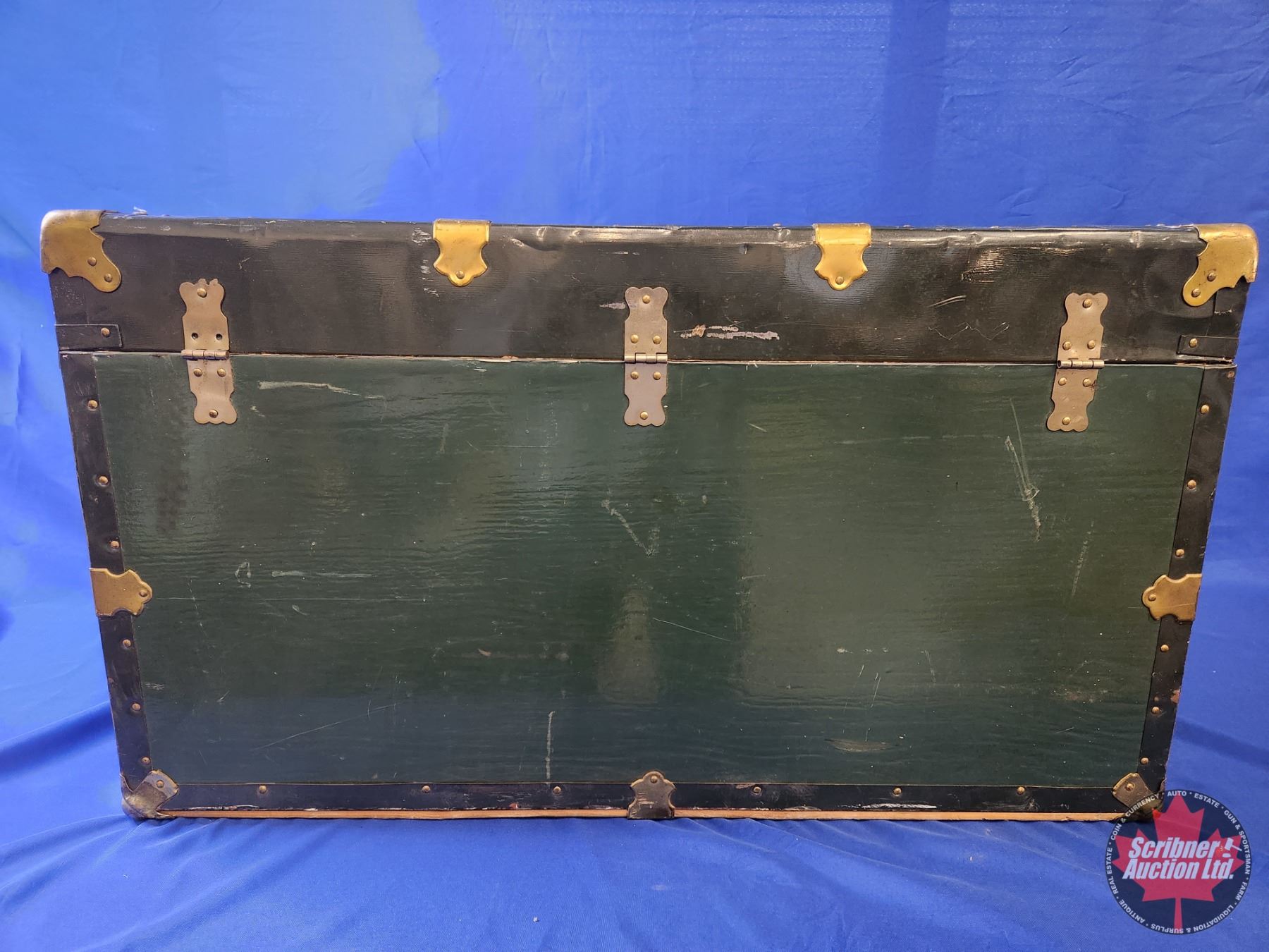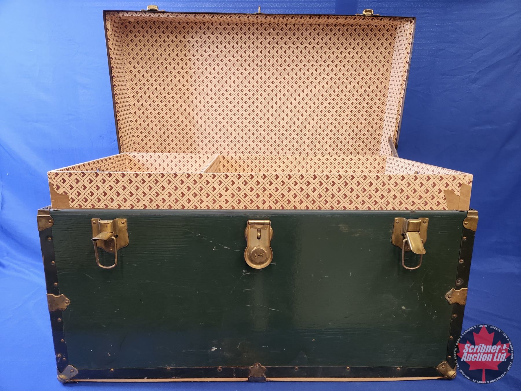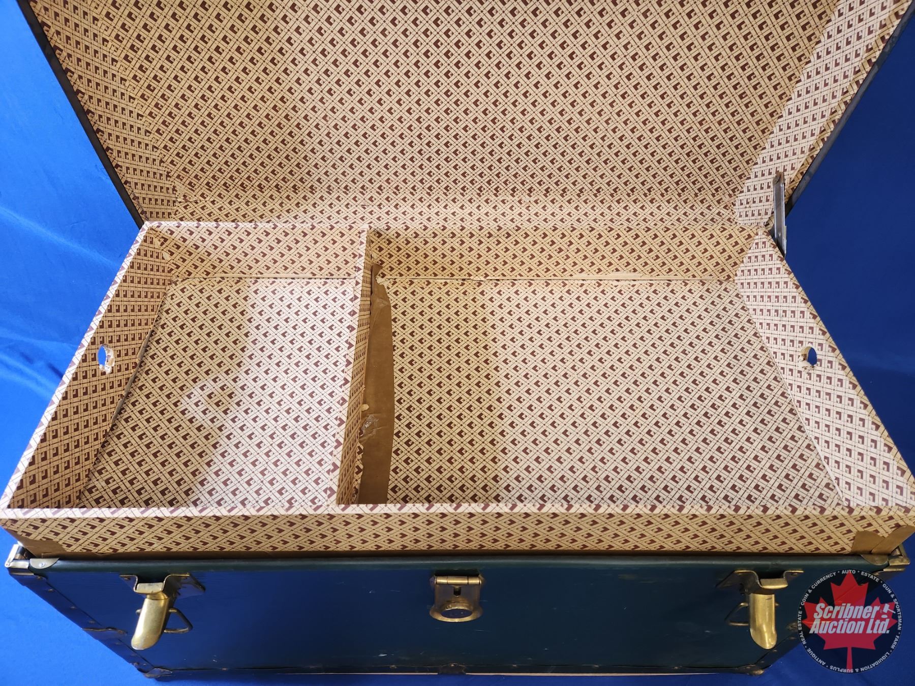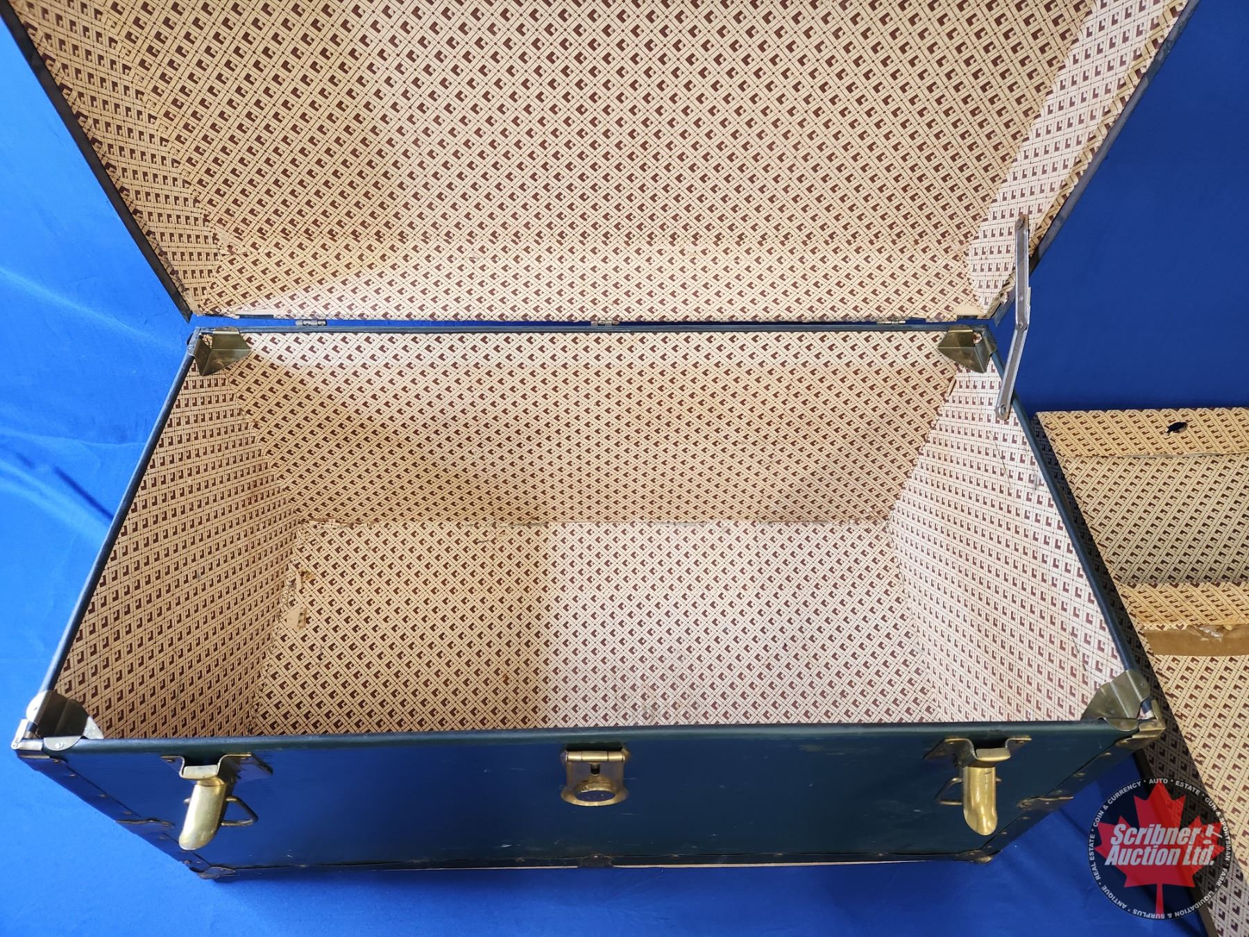 Steamer Trunk (Green) (Has Upper Tray) (19"H x 34-1/4"W x 18-1/2"D) (SEE PICS!)