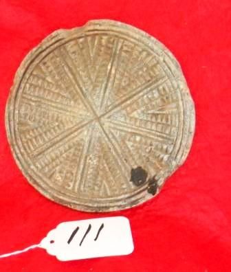 Steatite Neolithic Tablet, measures 6 inches round and 1/4 inch tall, has some edge damage. Circa 2000 BC. Shipping $18.00