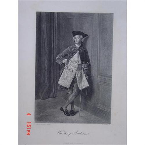 <tr><td>Title:Steel Engraving "Waiting Audience" by C. Carey</td></tr>