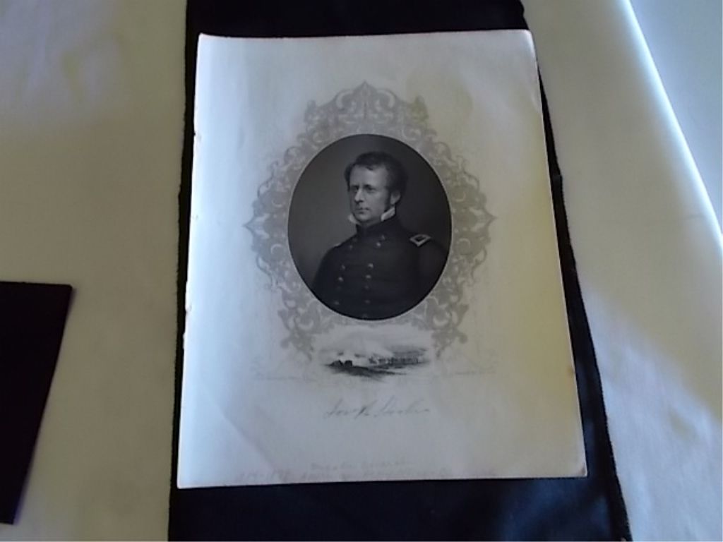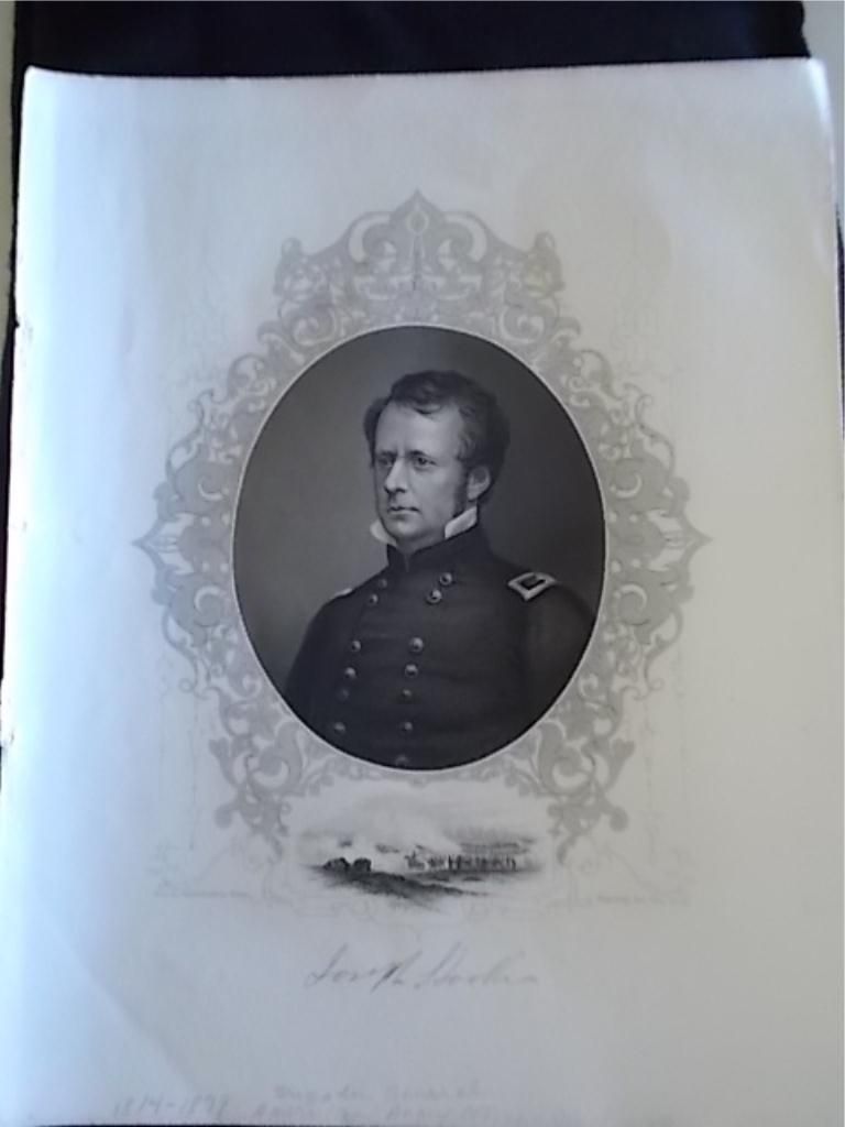 5t - Steel Engraving of Joseph Hooker from the N. Y. Studio of Matthew Brady This steel engraving can be seen in “Battles of America by Sea and Land” Volume III c1878. The engraving is not taken from that book; this work is larger, 8 15/16” x 11 7/16”. There are three similar others in this auction. It is from an ambrotype by Matthew Brady expressly for this work. Joseph Hooker, 1814 – 1879 was a career United States Army officer. He served with distinction, but best remembered for his stunning defeat by Confederate General Robert E. Lee in 1863. Condition is very good; there are easily removed notations in pencil at the bottom.