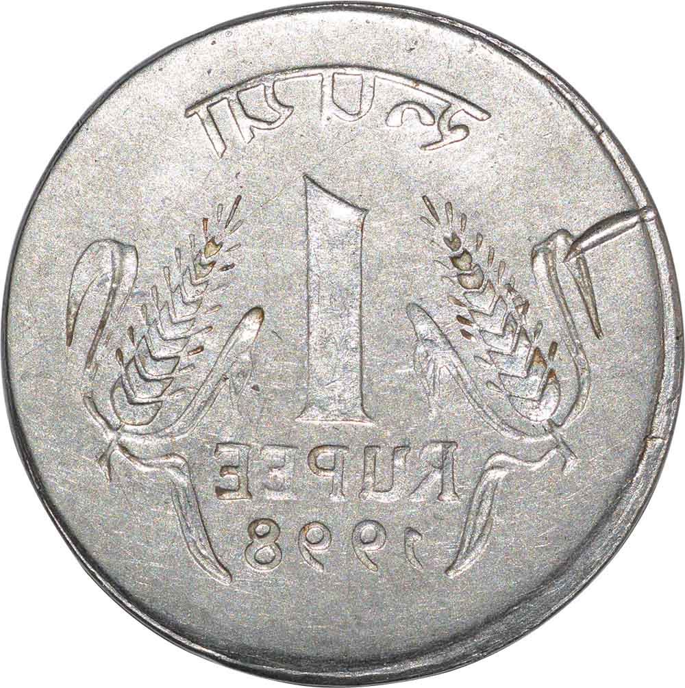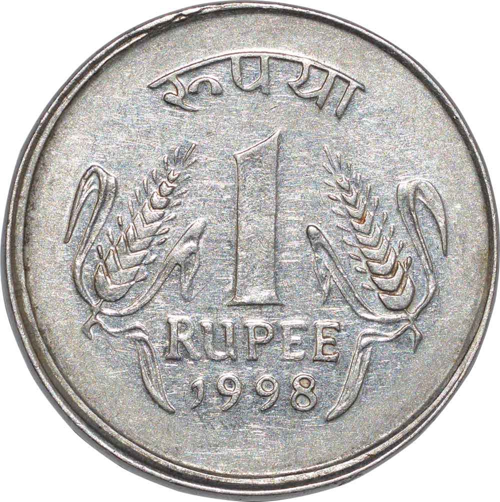 Republic India, Steel, 1 Rupee, 1998, Calcutta Mint,Complete and deep brockage of obverse on reverse, 4.90g, 25.63mm, about extremely fine.