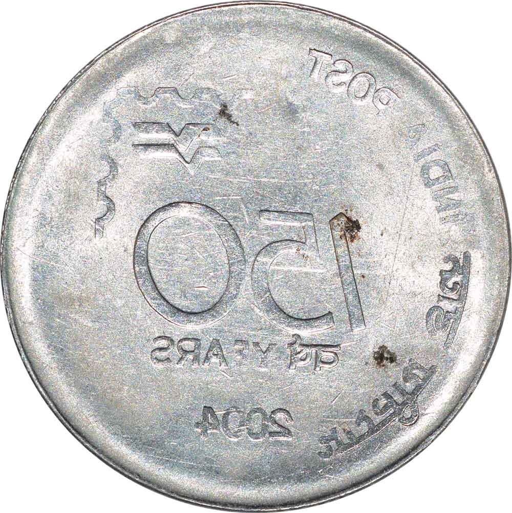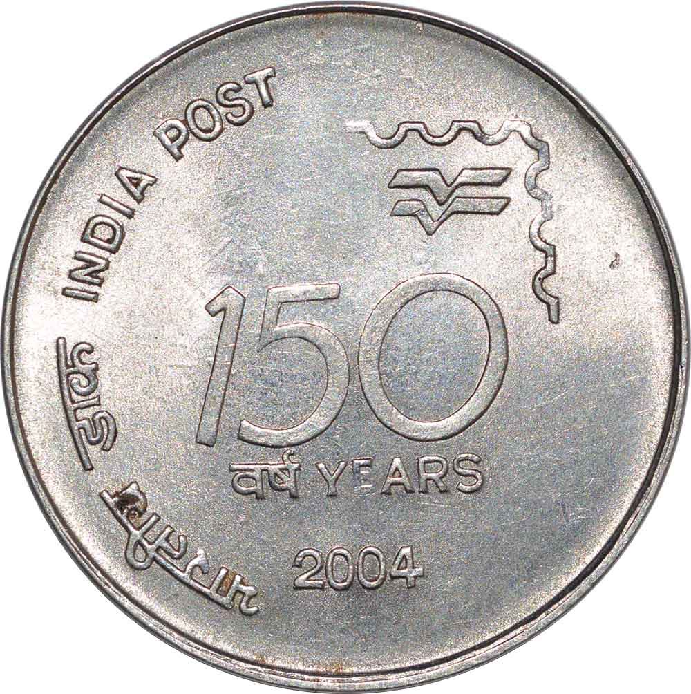 Republic India, Steel, 1 Rupee, 2004,150th Anniversary of the Indian Postal Service,Complete obverse lakhi brockage with deep and full impressions ofreverse atobverse obverse die rotated 180° or 6'o clock,4.95g, 25.03mm, about extremely fine, Extremely Rare.