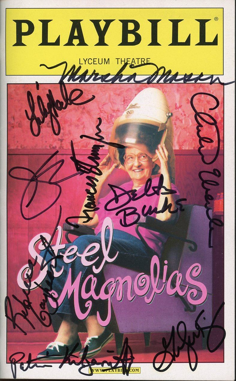 Playbill for the production Steel Magnolias signed by Delta Burke, Christine Ebersole, Rebecca Gayheart, Marsha Mason, Lily Rabe, Frances Sternhagen, Patricia Kilgarriff, Ginifer King, and Sally Mayes. All items come with a COA and guarantee for the life of the piece.