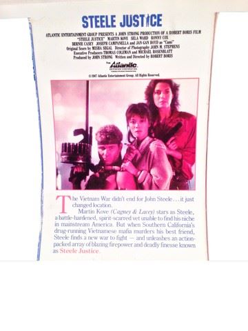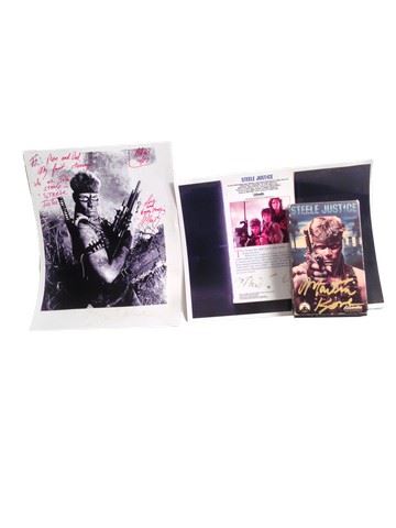 Steele Justice (1987) an autographed picture of Martin Kove with hand written note to his mom and dad and an actual beta movie copy with the back of the movie in picture form as well. (13x10)