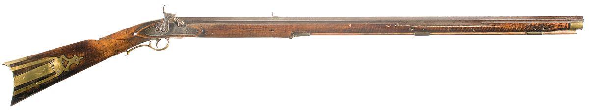 Lock marked "STEELE & WARREN / ALBANY", barrel marked "CW Jackson", broken trigger guard, crudely repaired stock wrist.