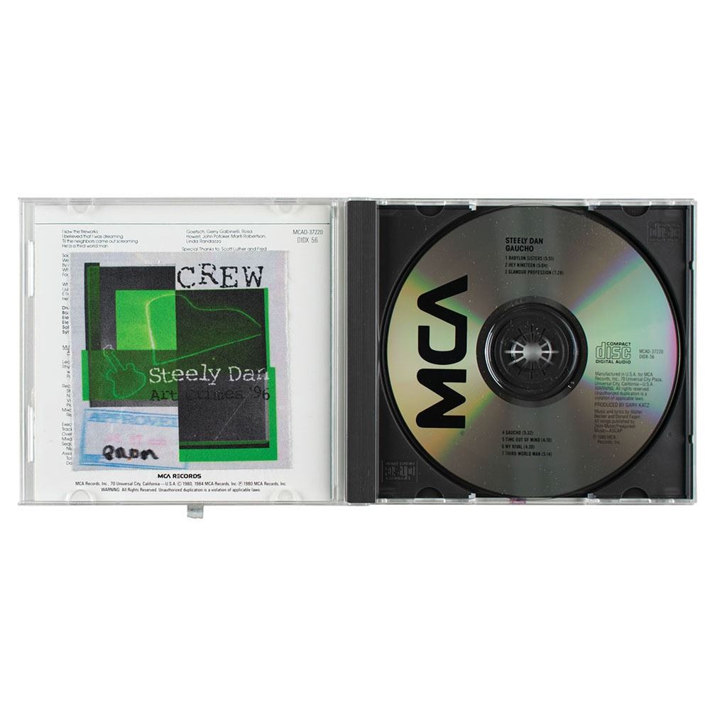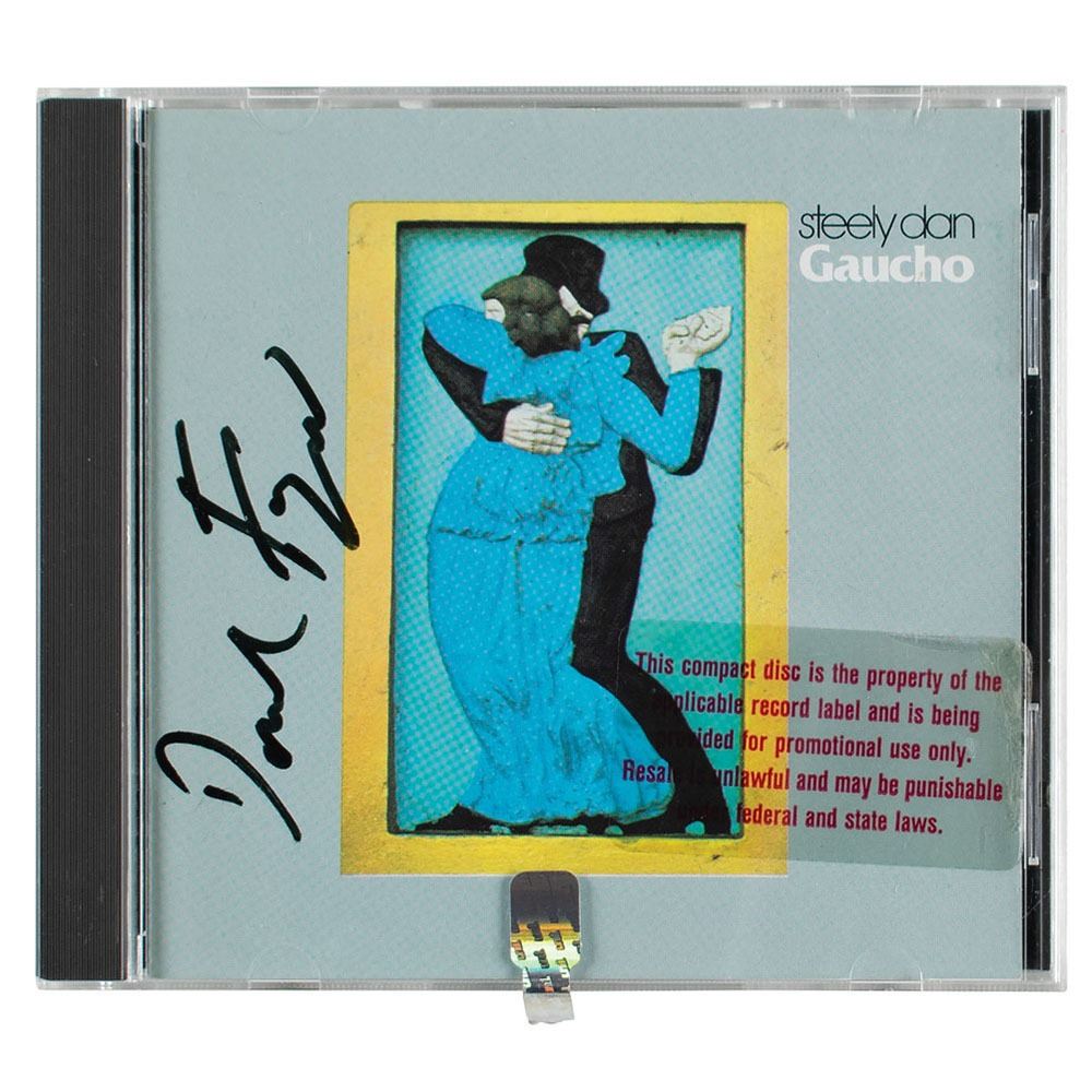 Gaucho CD by Steely Dan, signed on the front cover in black felt tip by Donald Fagan. In fine condition. The CD is included, and the back cover of booklet bears an affixed backstage 'crew' pass for a Steely Dan concert at the Meadows Music Theater in Hartford, Connecticut, on July 27, 1996, the date the autograph was obtained.
