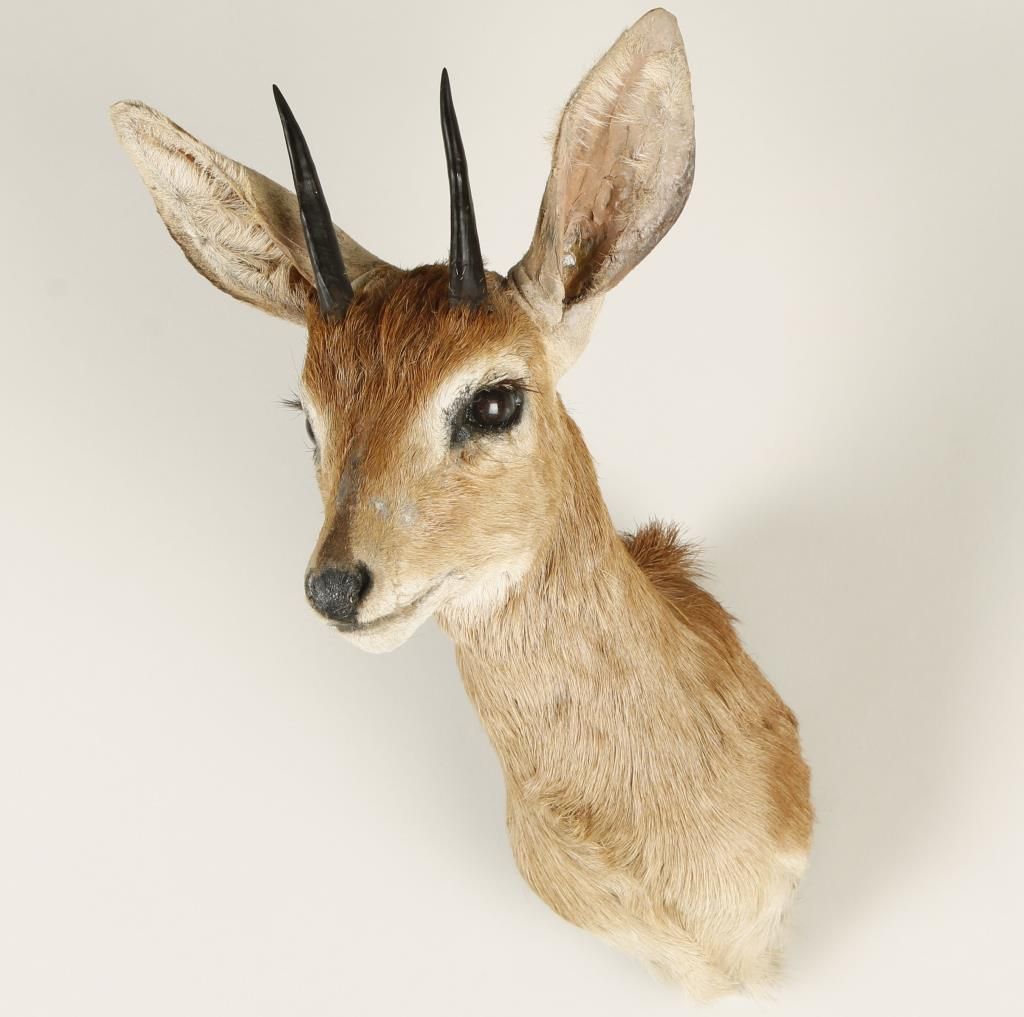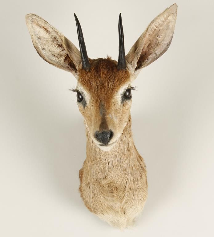 Taken in S.W.A., Namibia in 1985. Approx measurements are as follows: Overall height including horns: 15"; Widest point at ears: 8"; Back to Nose tip: 7"; Crown to Left horn tip: 3 1/4"; Crown to Right horn tip: 3 1/4"; Horn tip width: 2 1/2". Some hair loss on ears. "Tony DaCosta Collection" of noted hunter and owner of Safari Headquarters Ltd. from Carson City, NV.