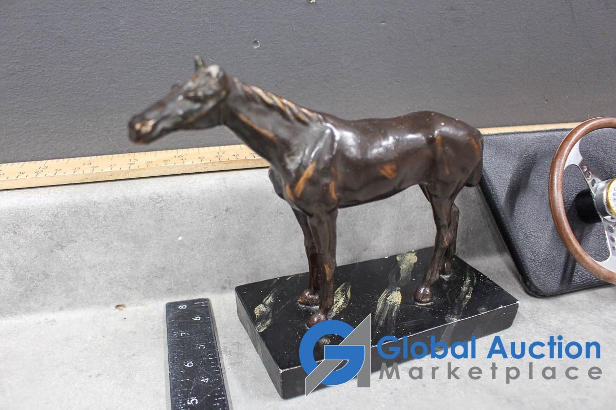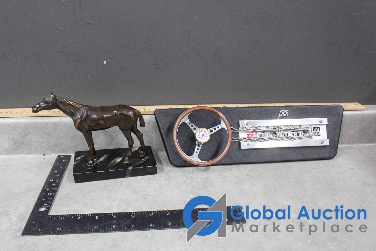 Steering Wheel Tie Rack w/Thermometer and a Horse Statue