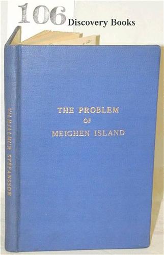 Stefansson, Vilhjalmur. THE PROBLEM OF MEIGHEN ISLAND. INTENDED AS THE THIRD CHAPTER BUT SUPPRESSED IN THE PUBLICATION OF UNSOLVED MYSTERIES OF THE ARCTIC ...... New York: Privately Printed for Mr. Joseph Robinson 1939 iv,257-338pp. Two maps. Bound in plain blue cloth, gilt title on front & spine. No.219 of 300 copies, Very good & clean.