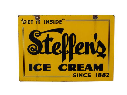 Steffen's Ice Cream"  2-sided porcelain sign  14 x 20 "  good cond