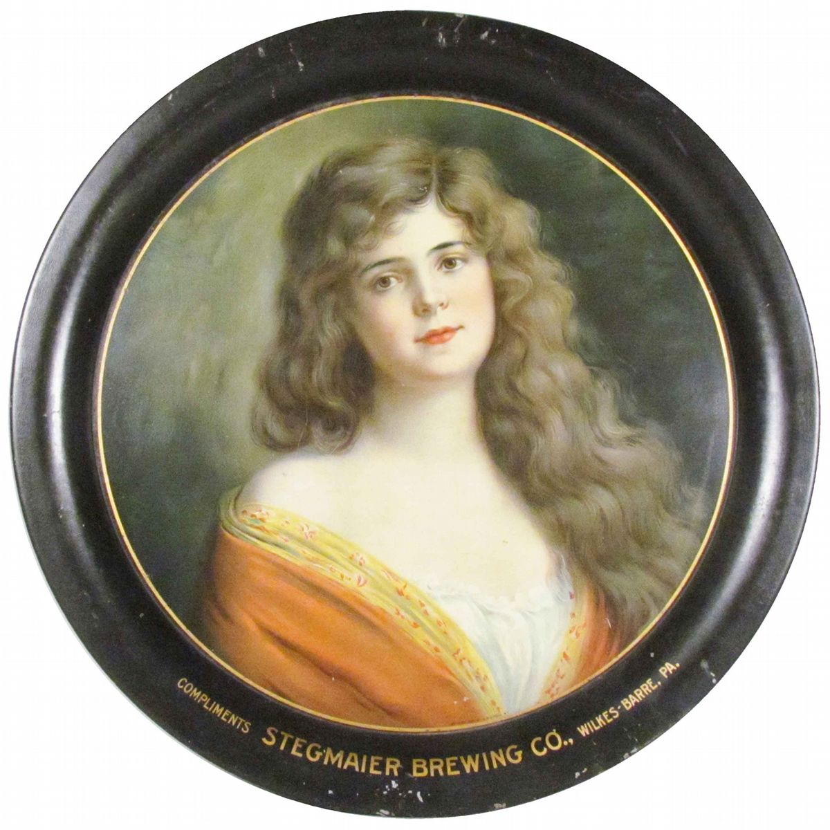 Stegmaier Brewing Company Tin Serving Tray. Wilkes-Barre, PA. Some minor chips mostly around perimeter otherwise very good condition. 13 1/4 inch diameter.