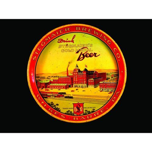 Stegmaiers Brewing Co. Tin Serving Tray, Wilkes-Barrem, PA some minor scratches otherwise very good condition, 12 inch diameter.