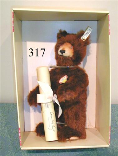 Steiff 1994 Replica Circus Bear with snap-back joints 1935 Brown 32, Genuine Mohair, app. 12 1/2". With certificate and white tag #00415 of 4000. Museum Collection. EAN# 401534.